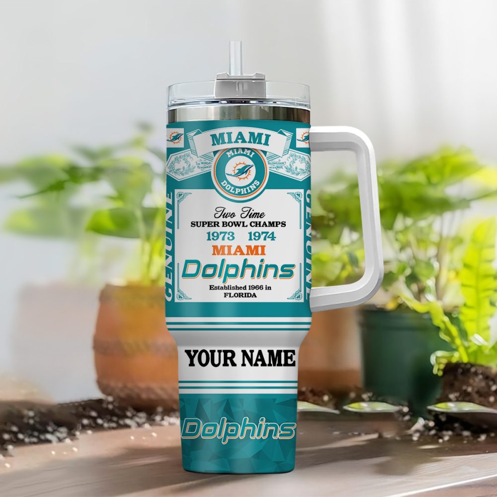 Miami Dolphins Nfl Custom Stanley Quencher 40Oz Stainless Steel Tumbler With Handle