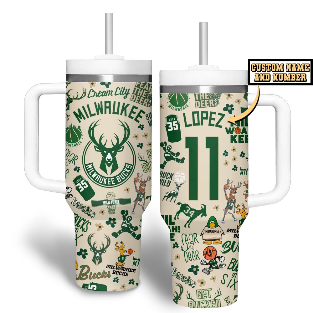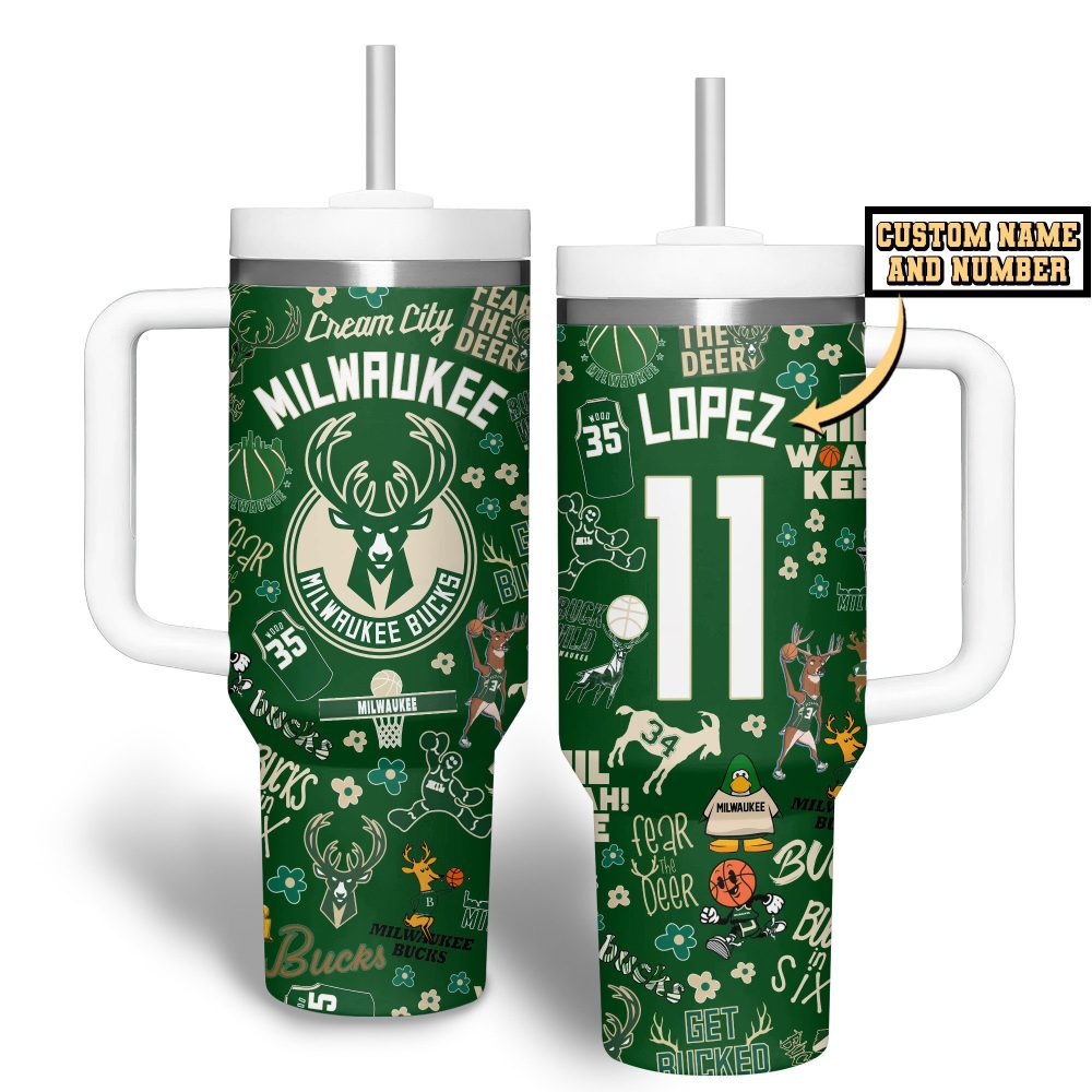 Milwaukee Bucks Nba Custom Stanley Quencher 40Oz Stainless Steel Tumbler