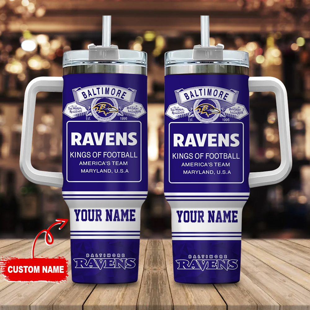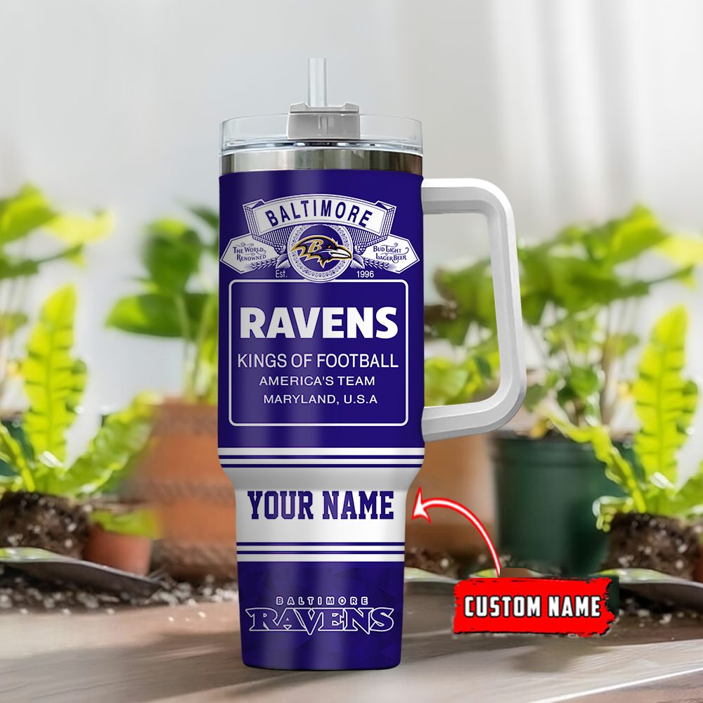 Baltimore Ravens Nfl Bud Light Custom Stanley Quencher 40Oz Stainless Steel Tumbler With Handle