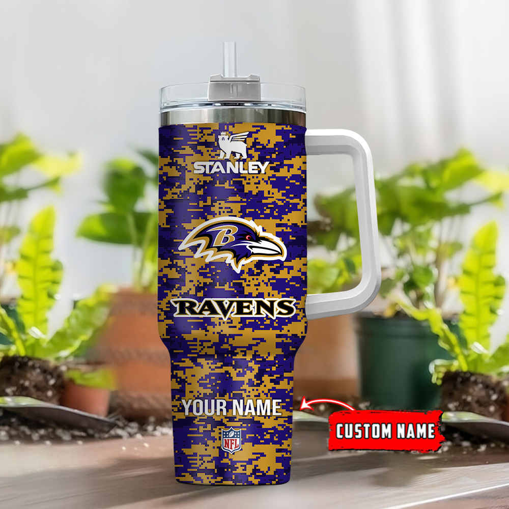 Baltimore Ravens Nfl Camo Pattern Custom Stanley Quencher 40Oz Stainless Steel Tumbler With Handle