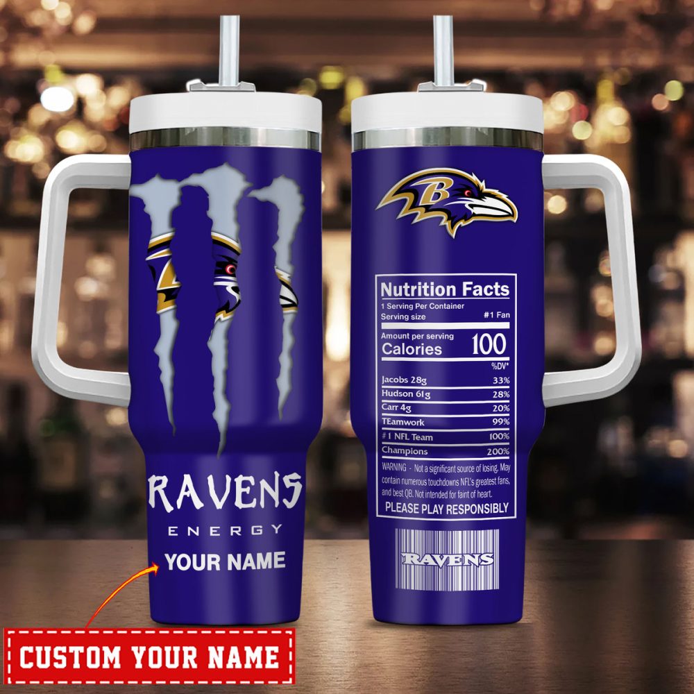 Baltimore Ravens Nfl Energy Nutrition Facts Custom Stanley Quencher 40Oz Stainless Steel Tumbler With Handle