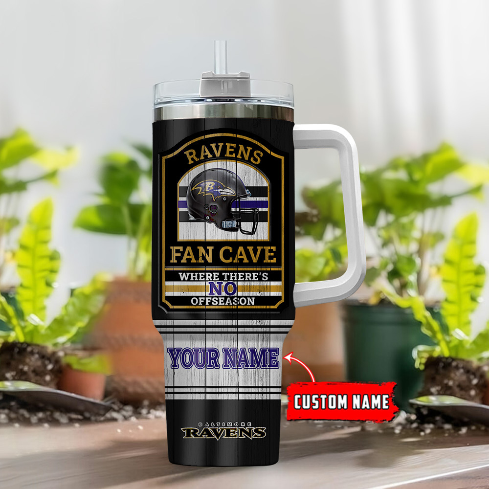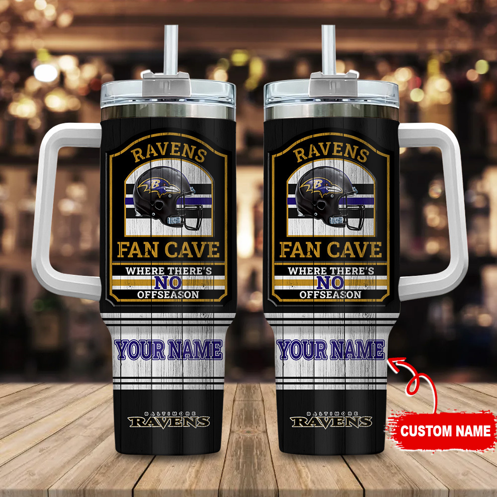 Baltimore Ravens Nfl Fan Cave Custom Stanley Quencher 40Oz Stainless Steel Tumbler With Handle