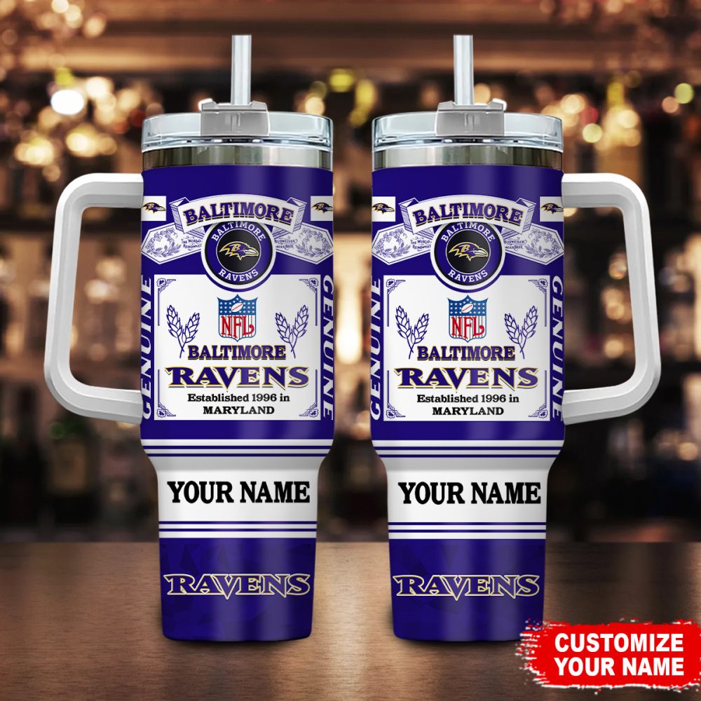 Baltimore Ravens Nfl Custom Stanley Quencher 40Oz Stainless Steel Tumbler With Handle