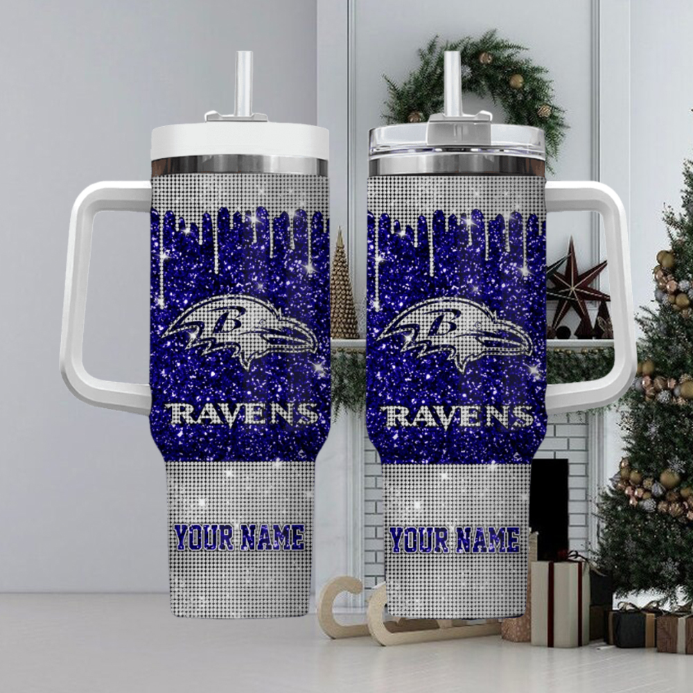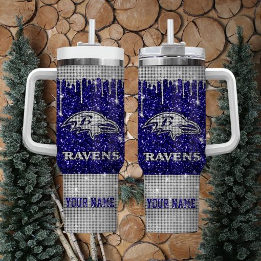 Baltimore Ravens Nfl Glitter Custom Stanley Quencher 40Oz Stainless Steel Tumbler With Handle