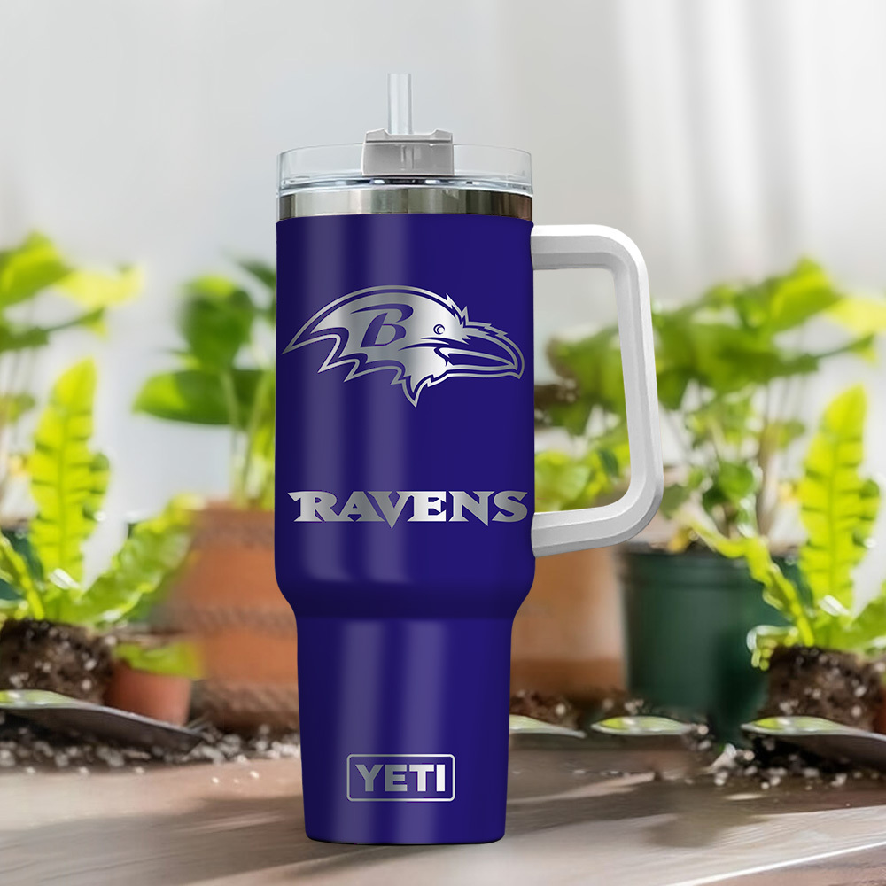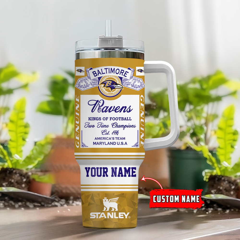 Baltimore Ravens Nfl Laser Engraved Effect Custom Stanley Quencher 40Oz Stainless Steel Tumbler With Handle