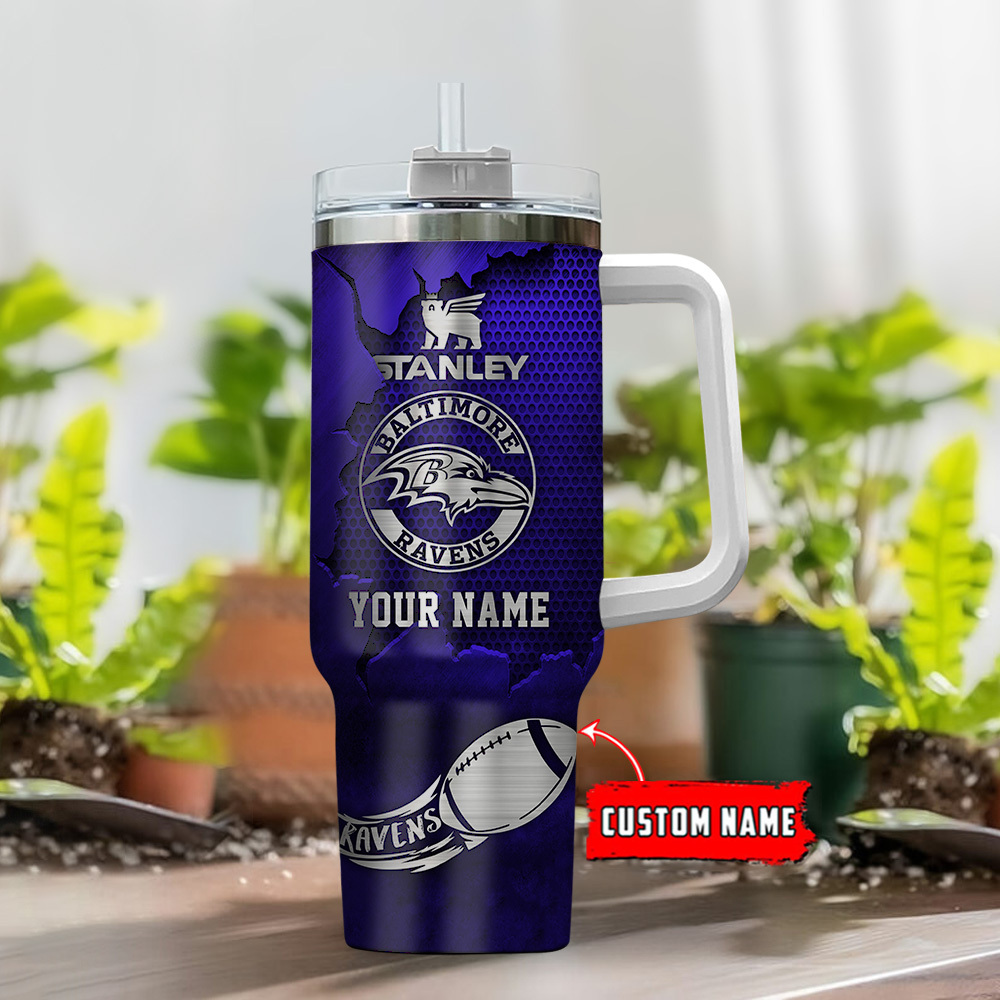 Baltimore Ravens Nfl Metal Style Custom Stanley Quencher 40Oz Stainless Steel Tumbler With Handle