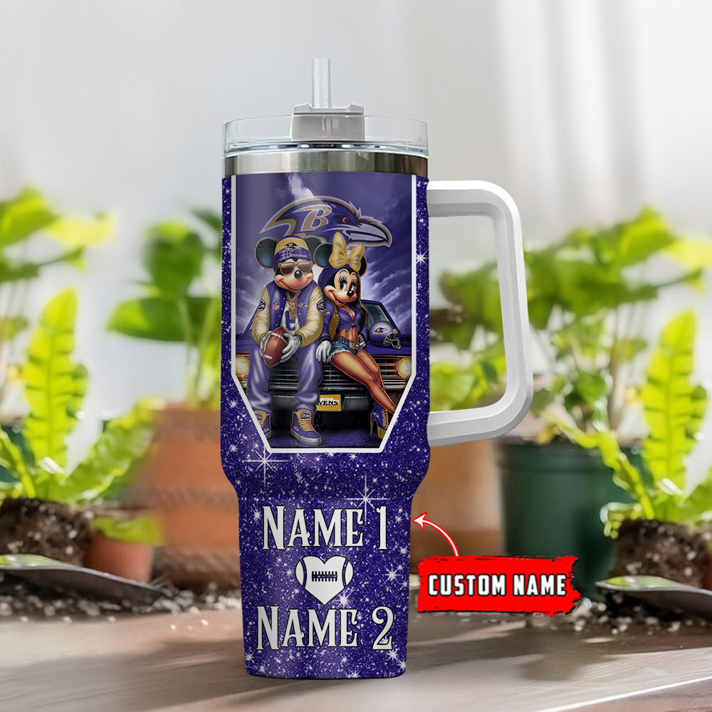 Baltimore Ravens Nfl Mickey And Minnie Couple Custom Stanley Quencher 40Oz Stainless Steel Tumbler With Handle
