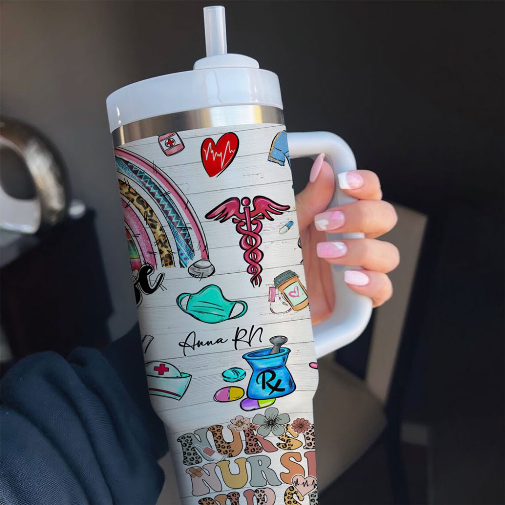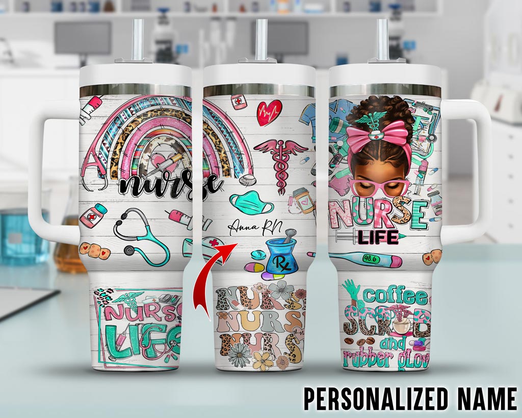 Black Nurse Custom Stanley Quencher 40Oz Stainless Steel Tumbler