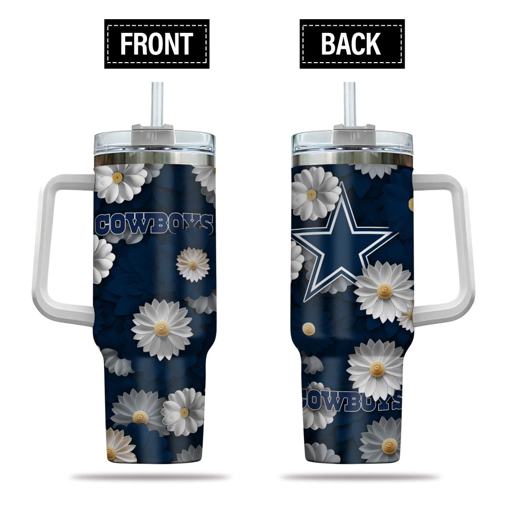 Dallas Cowboys Nfl Flowers Custom Stanley Quencher 40Oz Stainless Steel Tumbler With Handle