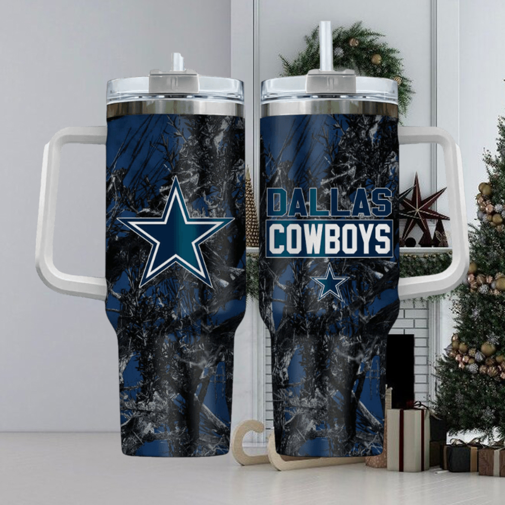 Dallas Cowboys Nfl Hunting Realtree Custom Stanley Quencher 40Oz Stainless Steel Tumbler With Handle