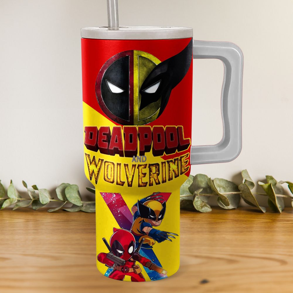 Deadpool And Wolverine Marvel Movies Custom Stanley Quencher 40Oz Stainless Steel Tumbler With Handle