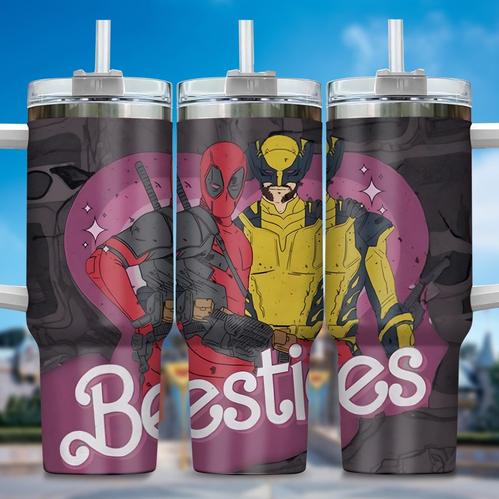 Deadpool Wolverine Movies Custom Stanley Quencher 40Oz Stainless Steel Tumbler With Handle