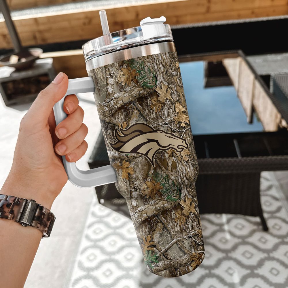 Denver Broncos Nfl Hunting Realtree Custom Stanley Quencher 40Oz Stainless Steel Tumbler With Handle