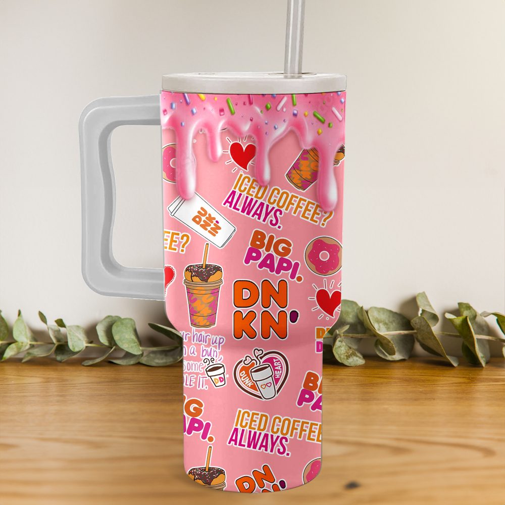 Dunkin Donuts Iced Coffee Custom Stanley Quencher 40Oz Stainless Steel Tumbler With Handle