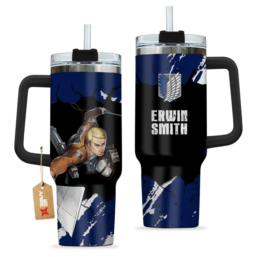 Erwin Smith Attack On Titan Anime Custom Stanley Quencher 40Oz Stainless Steel Tumbler With Handle