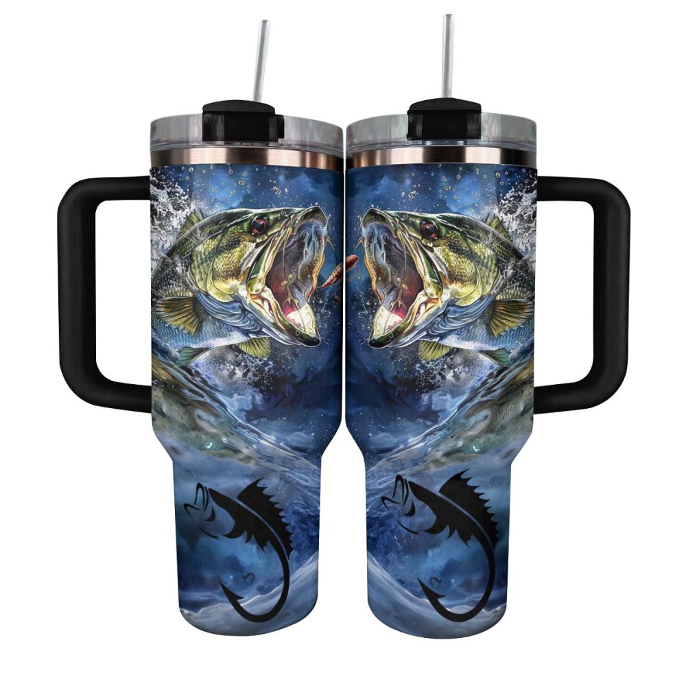 Fishing Hunter Hooked Blue Sport Custom Stanley Quencher 40Oz Stainless Steel Tumbler With Handle