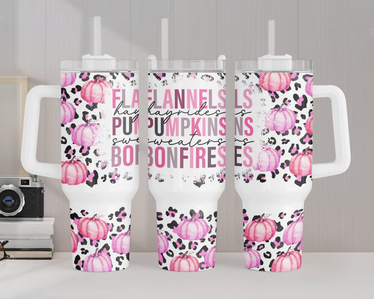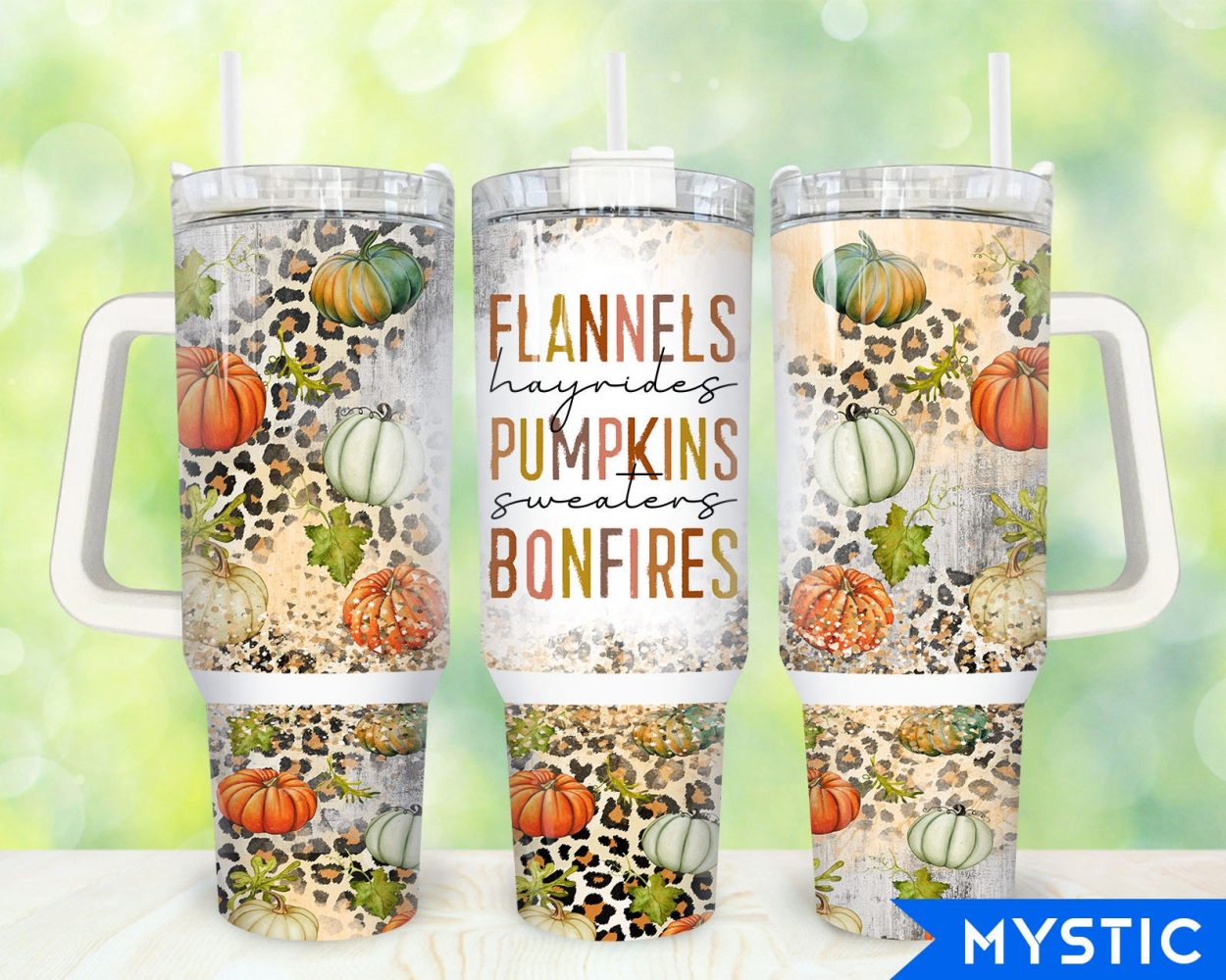Flannels Pumpkins Bonfires Custom Stanley Quencher 40Oz Stainless Steel Tumbler With Handle