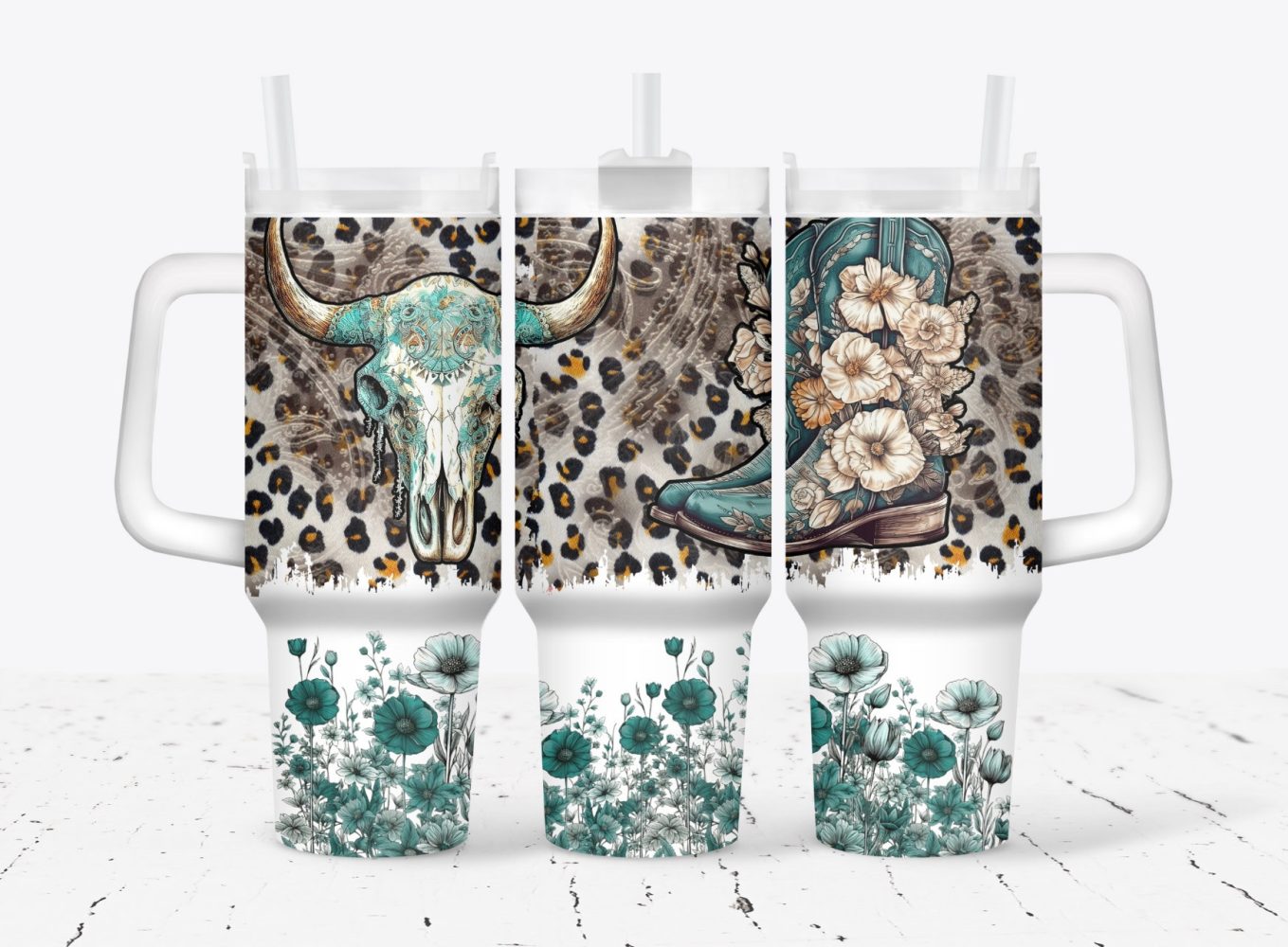 Floral Cowgirl Custom Stanley Quencher 40Oz Stainless Steel Tumbler With Handle