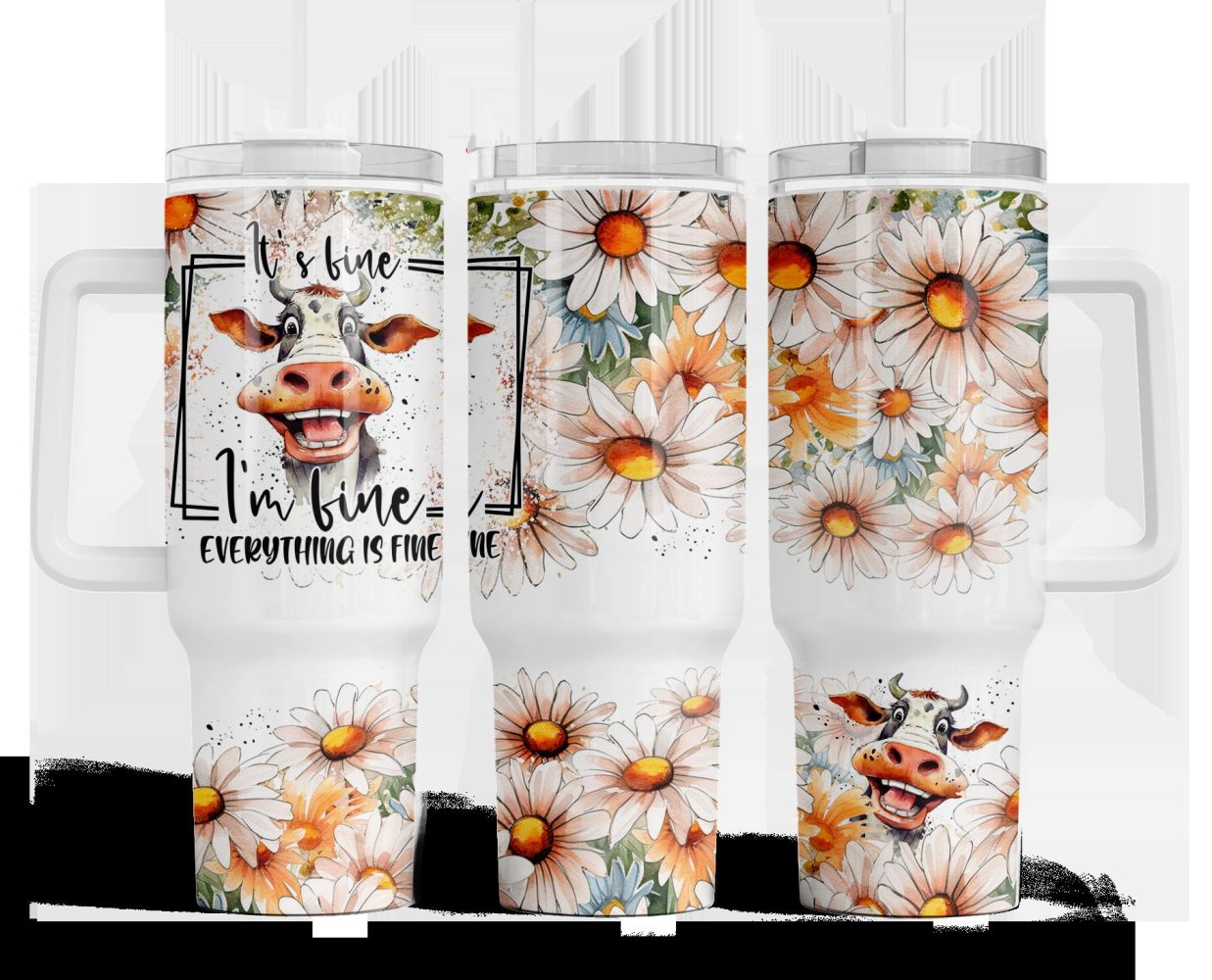 Floral Cow Custom Stanley Quencher 40Oz Stainless Steel Tumbler With Handle