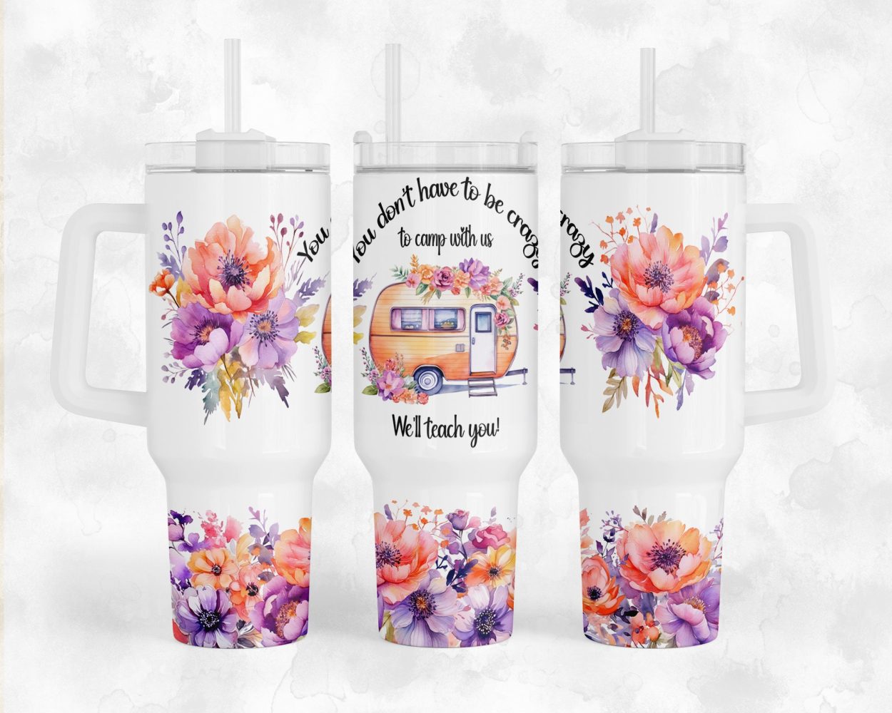Floral Camping Custom Stanley Quencher 40Oz Stainless Steel Tumbler With Handle