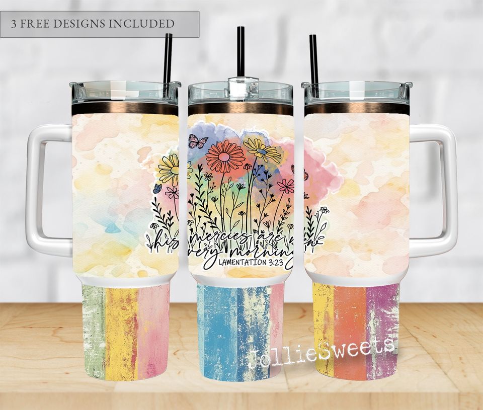 Floral Custom Stanley Quencher 40Oz Stainless Steel Tumbler With Handle