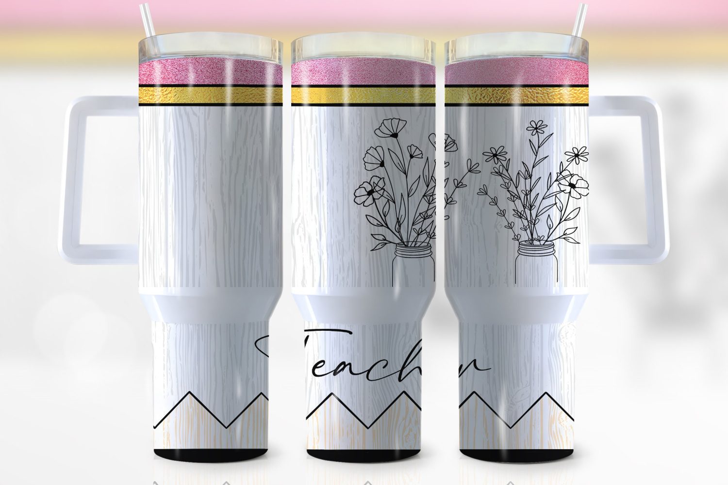 Floral Pencil Pattern Teacher Custom Stanley Quencher 40Oz Stainless Steel Tumbler With Handle