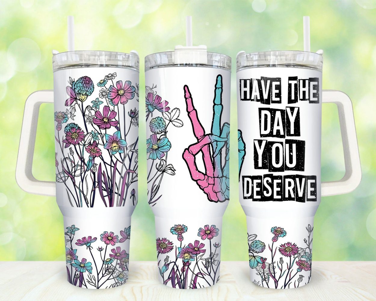 Floral Skeleton Hand Custom Stanley Quencher 40Oz Stainless Steel Tumbler With Handle