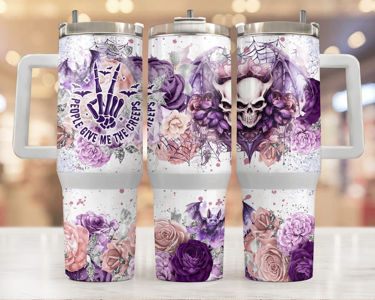 Floral Skull Custom Stanley Quencher 40Oz Stainless Steel Tumbler