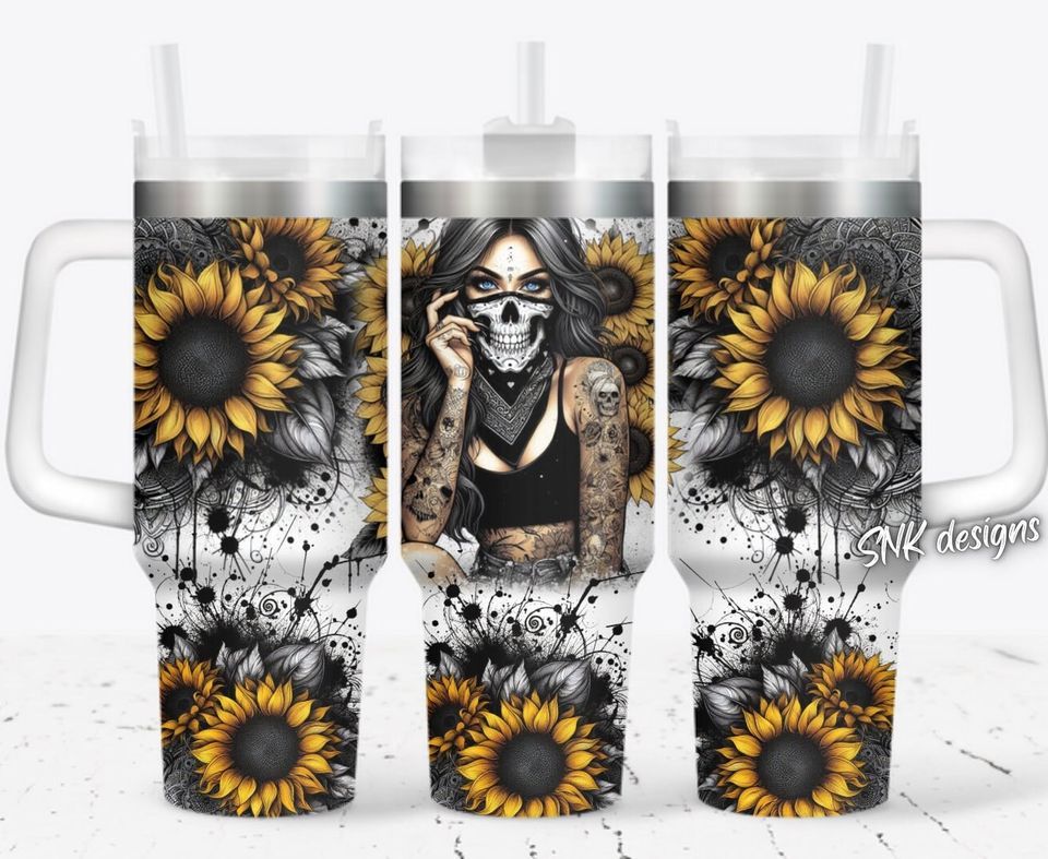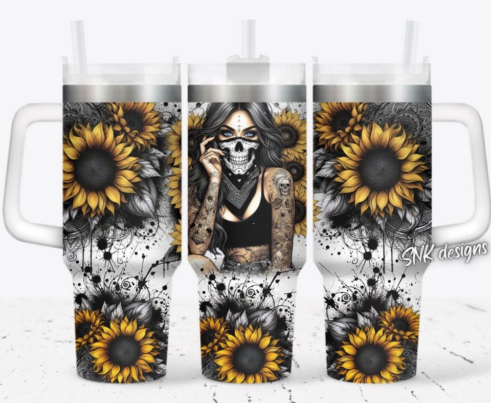 Floral Skull Girl Custom Stanley Quencher 40Oz Stainless Steel Tumbler