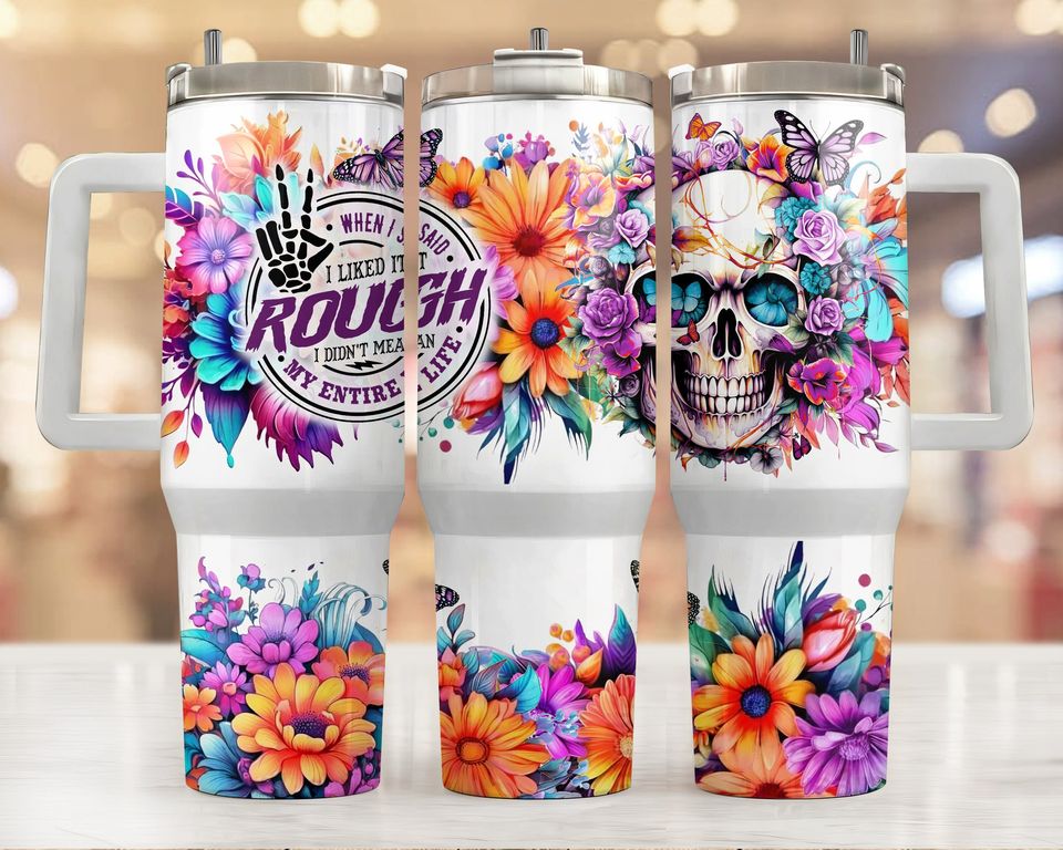 Floral Skull Custom Stanley Quencher 40Oz Stainless Steel Tumbler With Handle