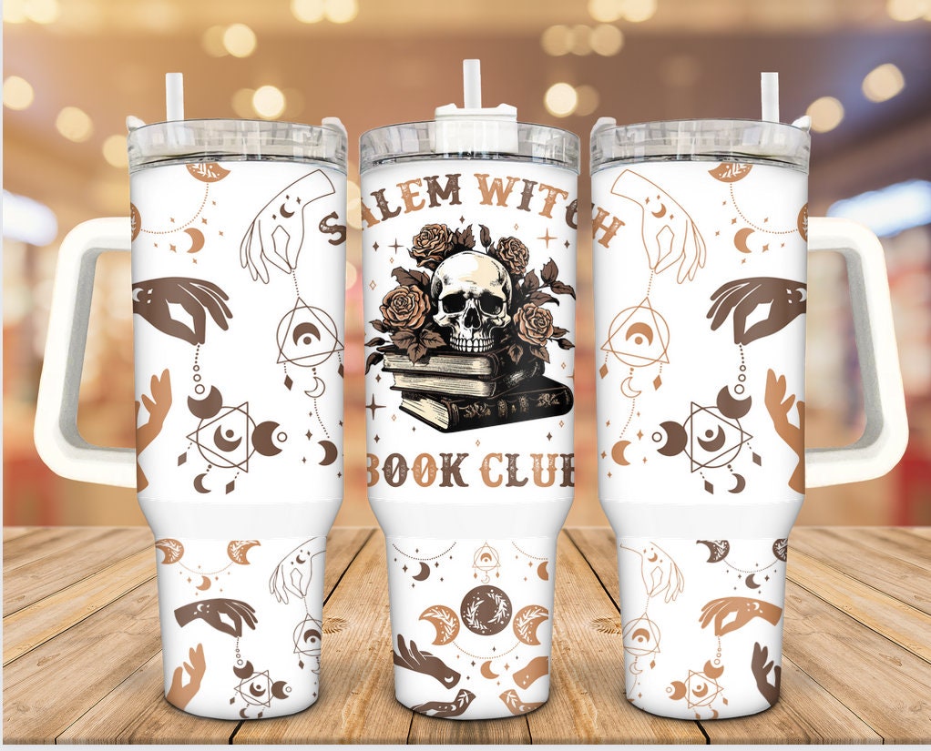 Floral With Books Custom Stanley Quencher 40Oz Stainless Steel Tumbler With Handle