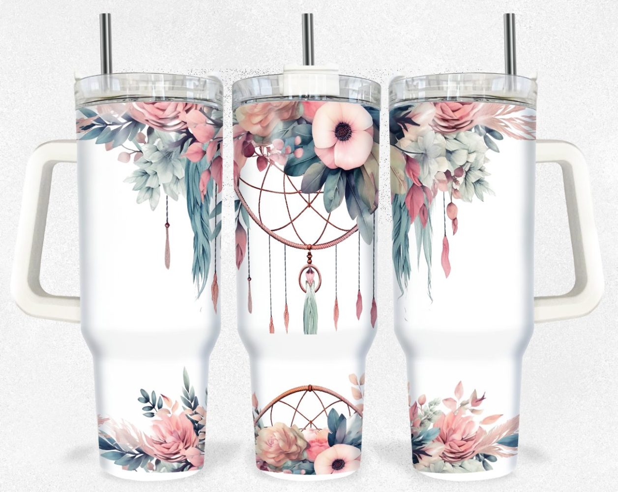 Floral Wind Chimes Custom Stanley Quencher 40Oz Stainless Steel Tumbler With Handle