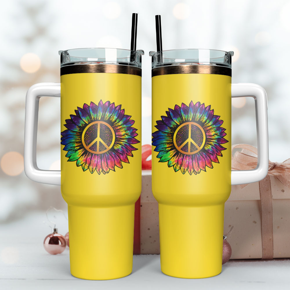 Flower Art Custom Stanley Quencher 40Oz Stainless Steel Tumbler With Handle