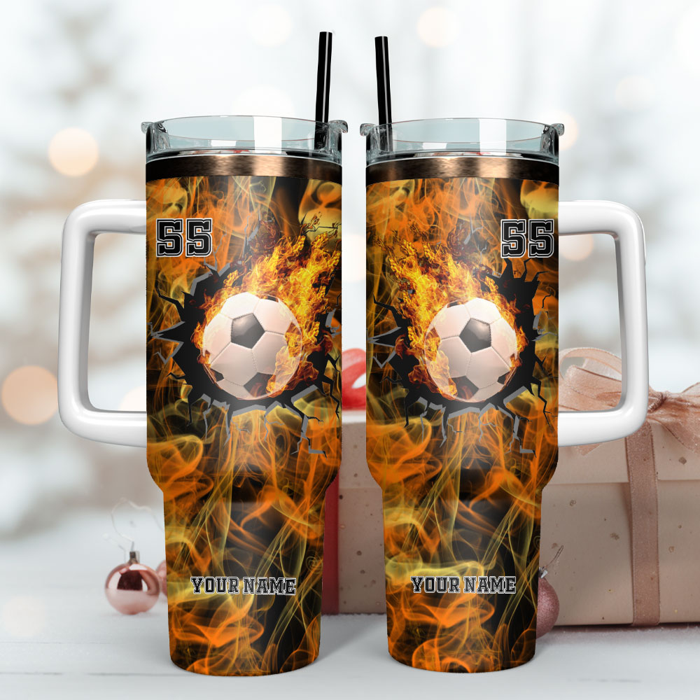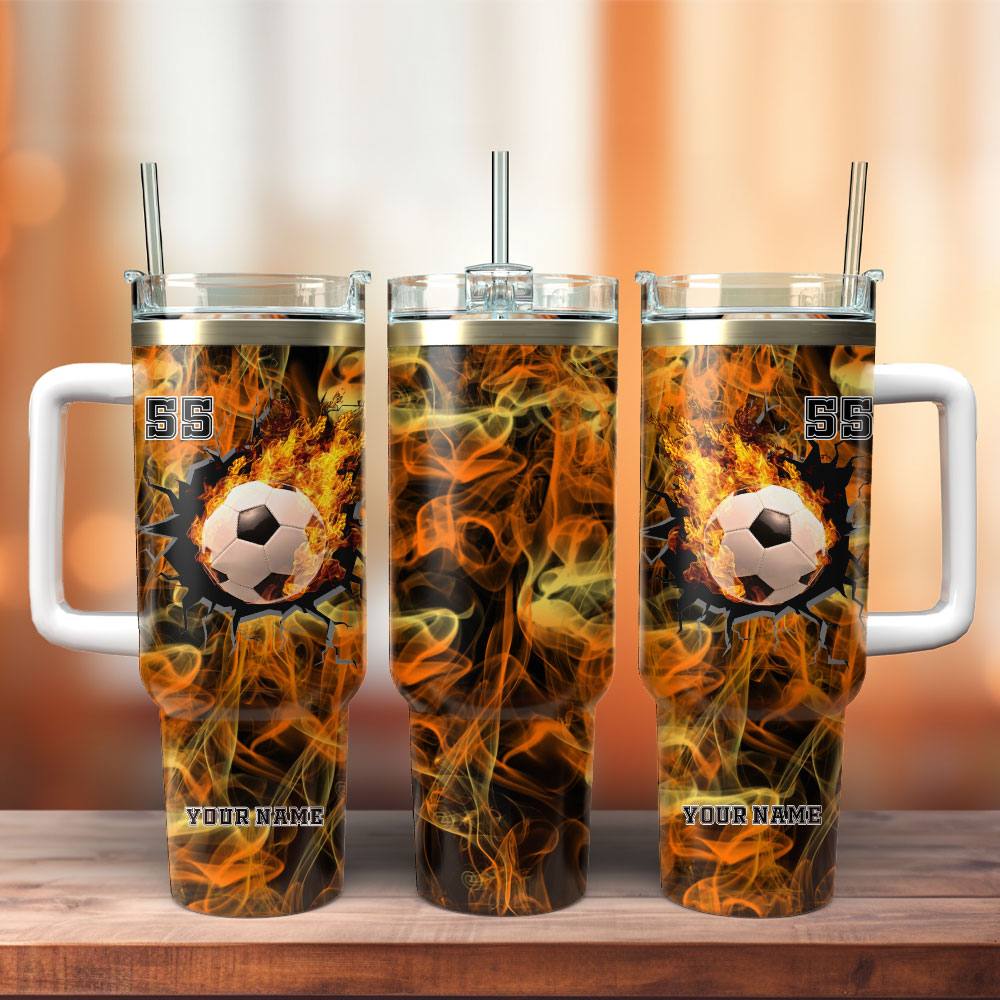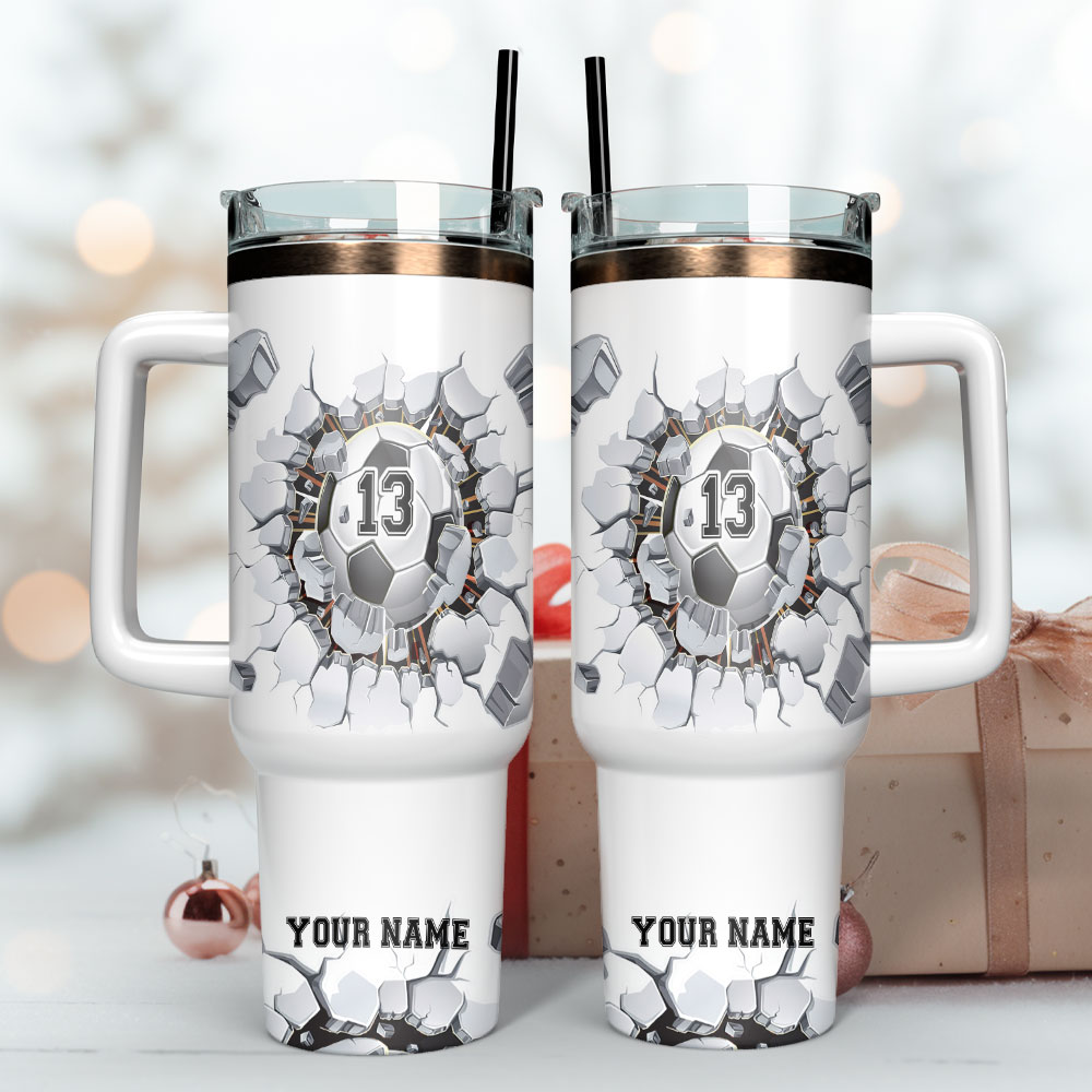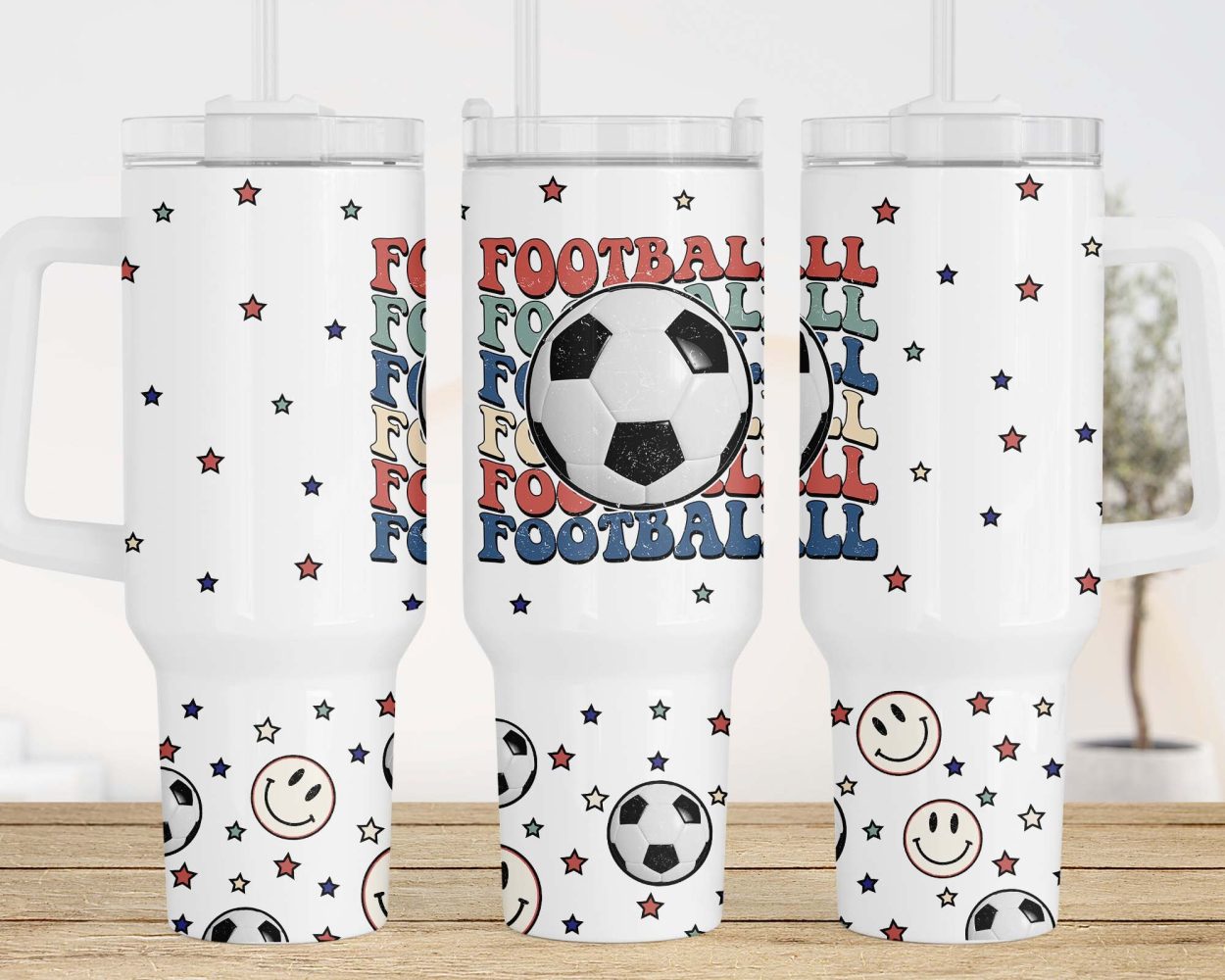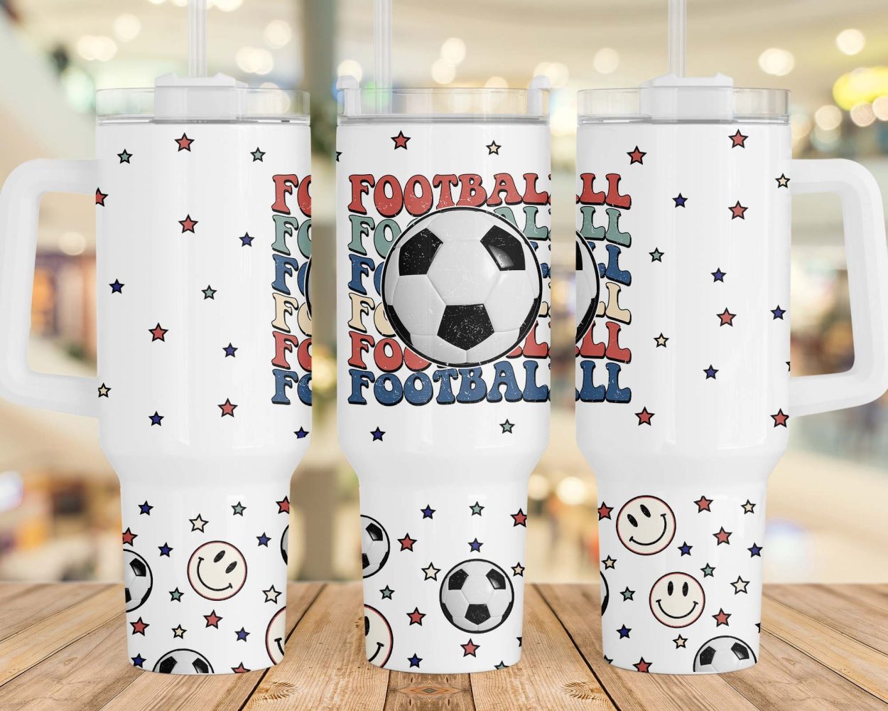 Football Custom Stanley Quencher 40Oz Stainless Steel Tumbler With Handle