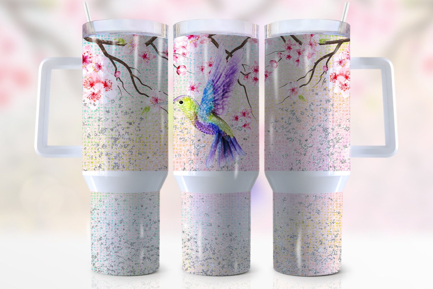 Glitter Hummingbird Custom Stanley Quencher 40Oz Stainless Steel Tumbler With Handle