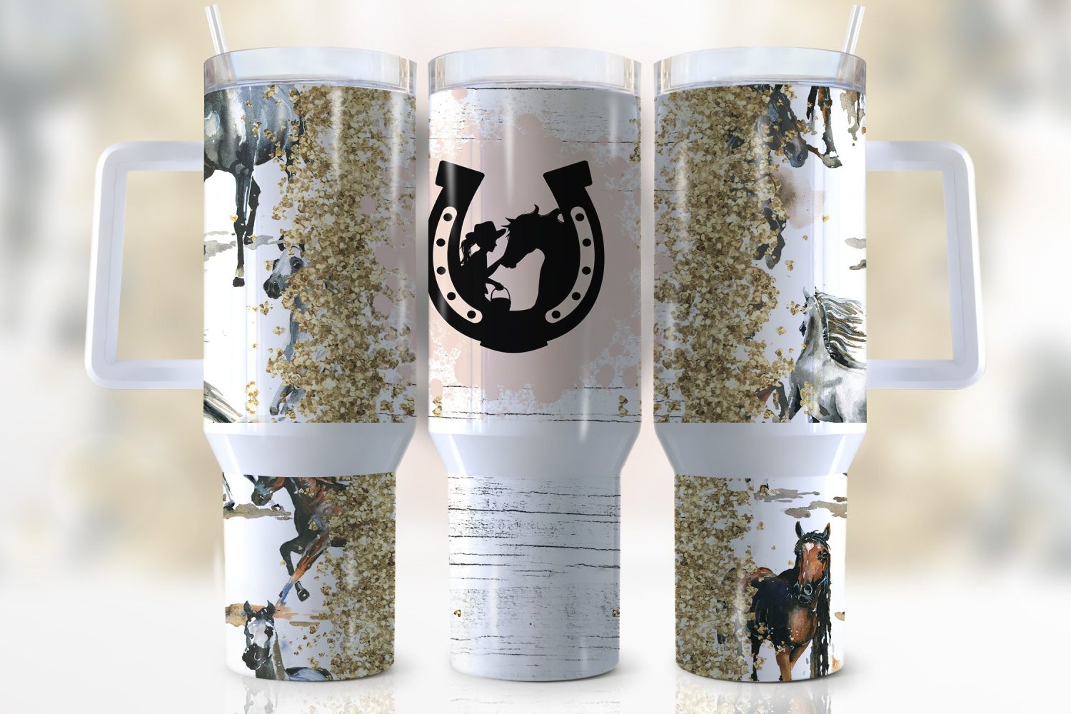 Glitter Horse Custom Stanley Quencher 40Oz Stainless Steel Tumbler With Handle