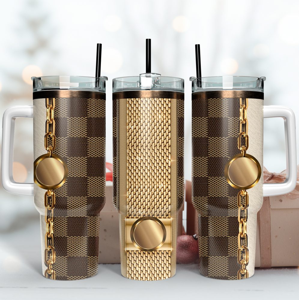 Golden Gucci Custom Stanley Quencher 40Oz Stainless Steel Tumbler With Handle
