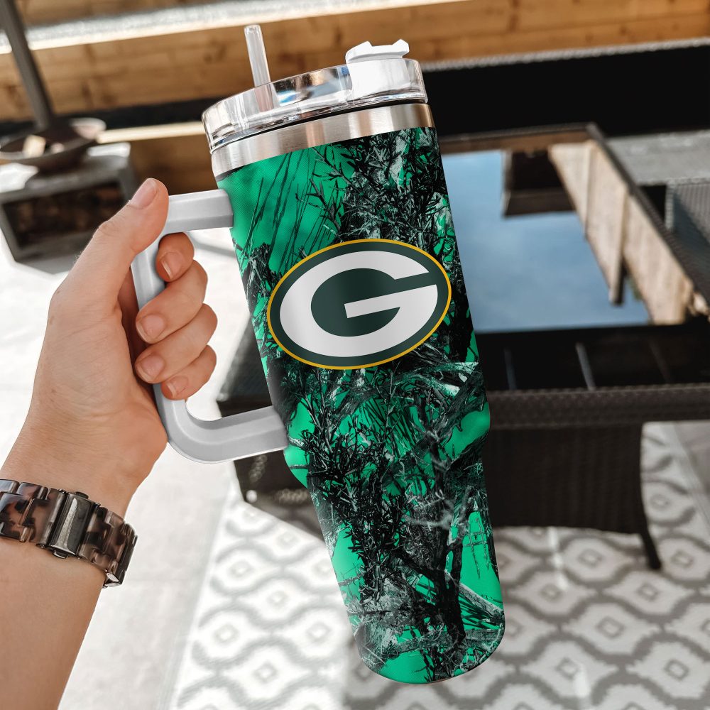 Green Bay Packers Nfl Hunting Custom Stanley Quencher 40Oz Stainless Steel Tumbler With Handle