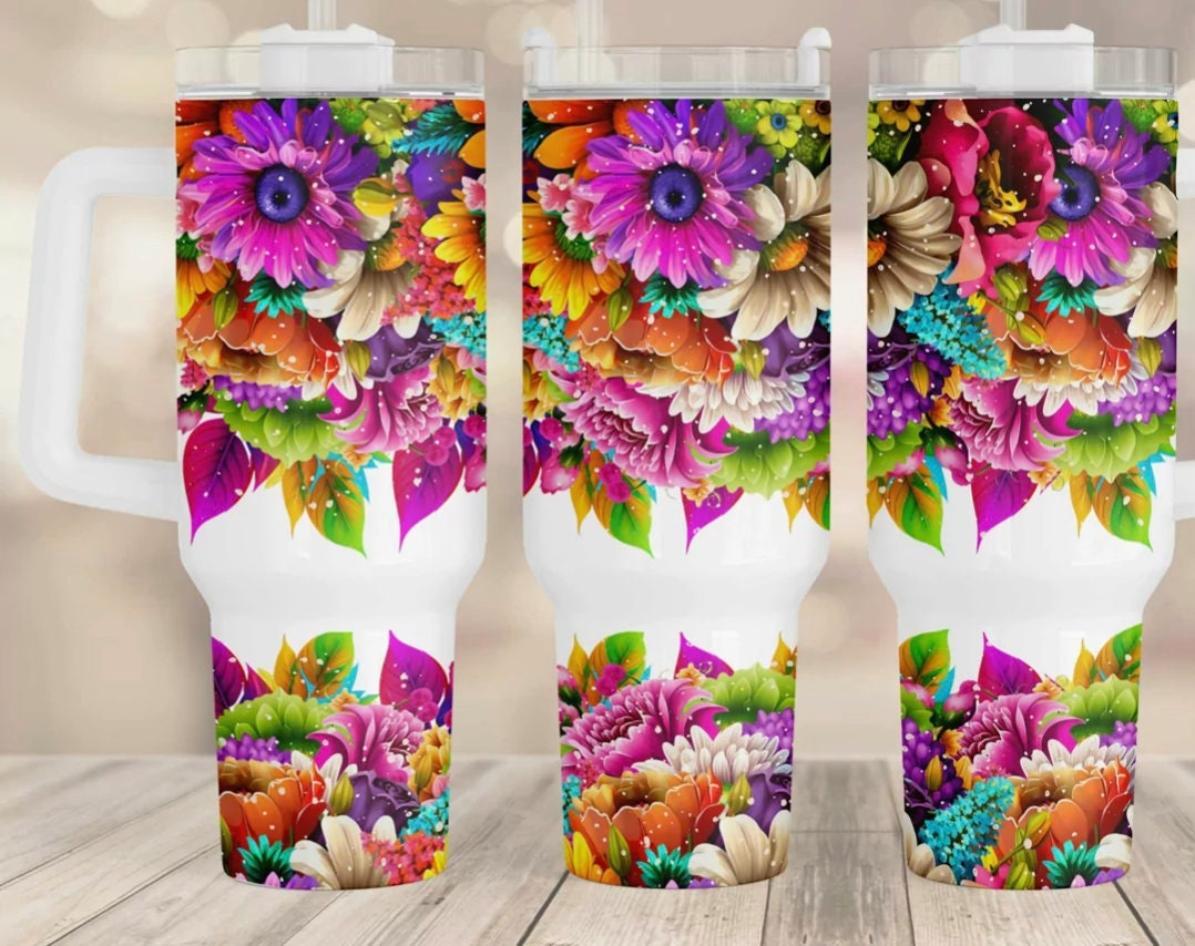 Groovy Flowers Custom Stanley Quencher 40Oz Stainless Steel Tumbler With Handle