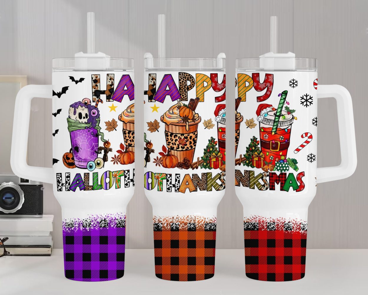 Happy Hallothanksmas Custom Stanley Quencher 40Oz Stainless Steel Tumbler With Handle
