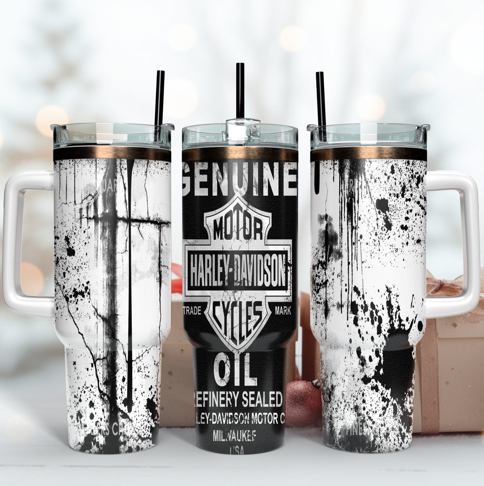 Harley Davidson Logo Custom Stanley Quencher 40Oz Stainless Steel Tumbler With Handle