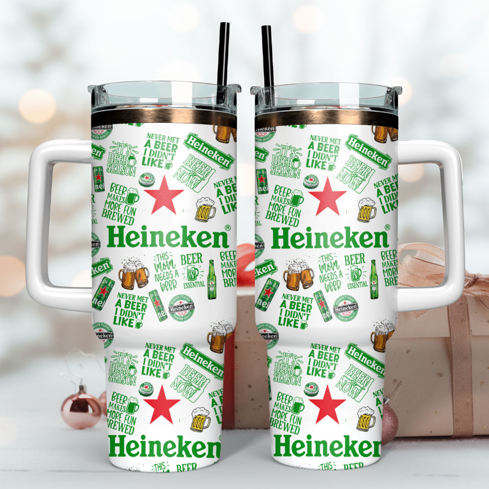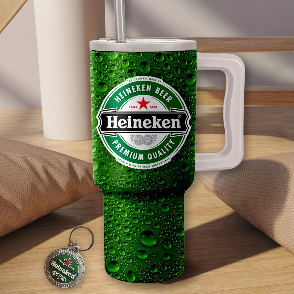 Heineken Premium Quality Beer Custom Stanley Quencher 40Oz Stainless Steel Tumbler With Handle