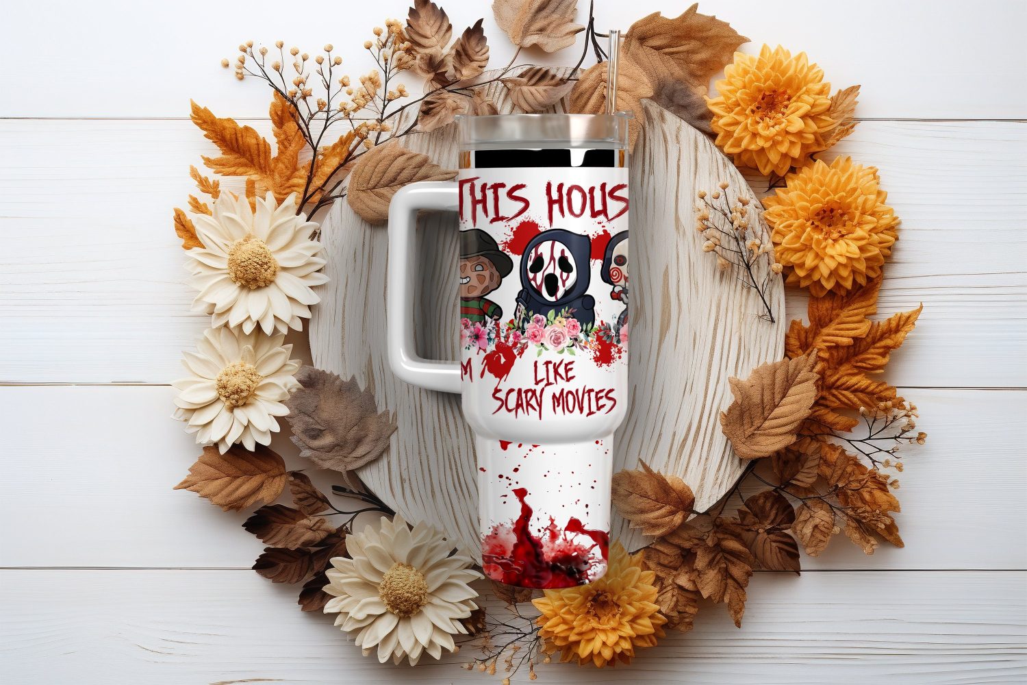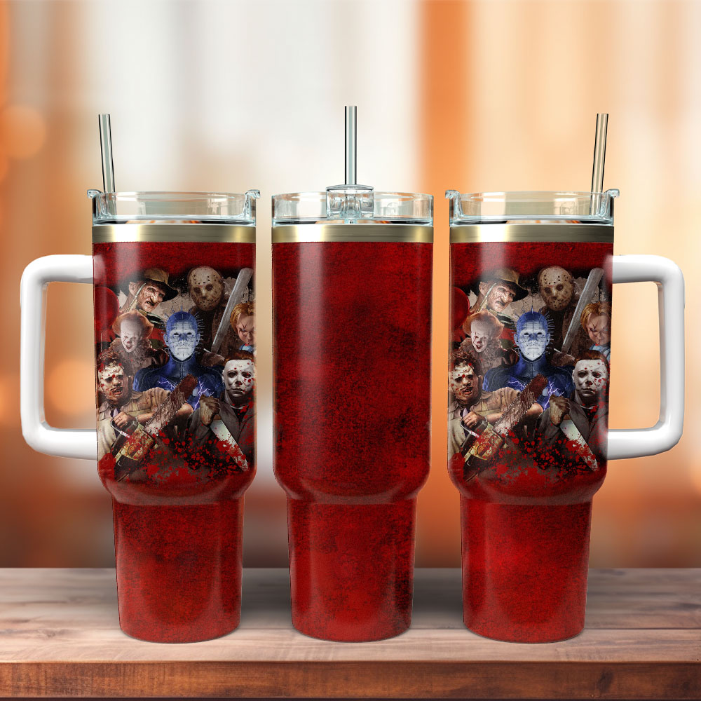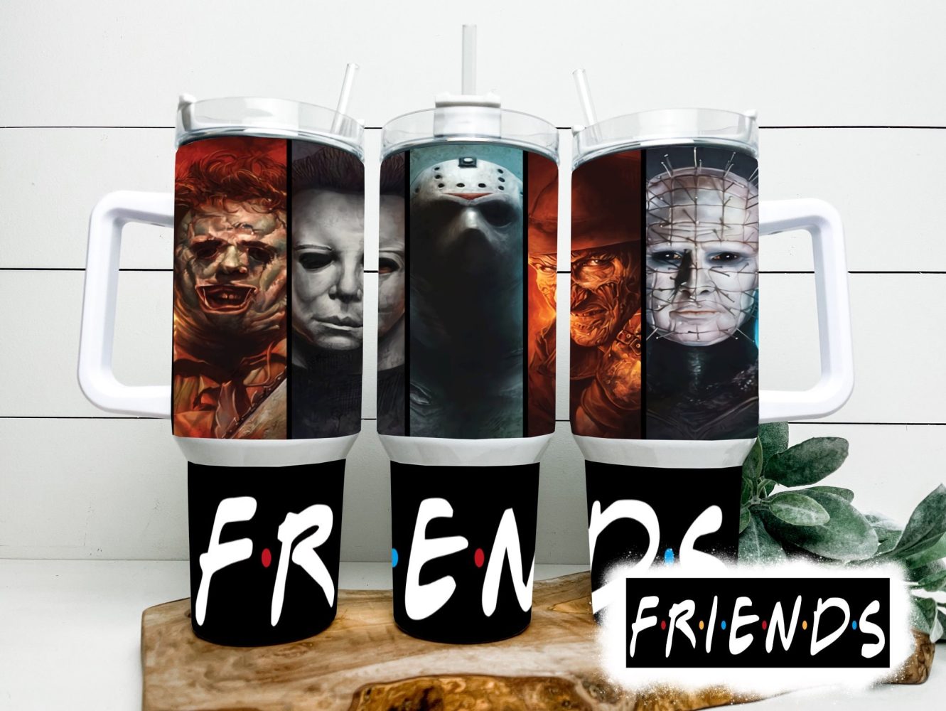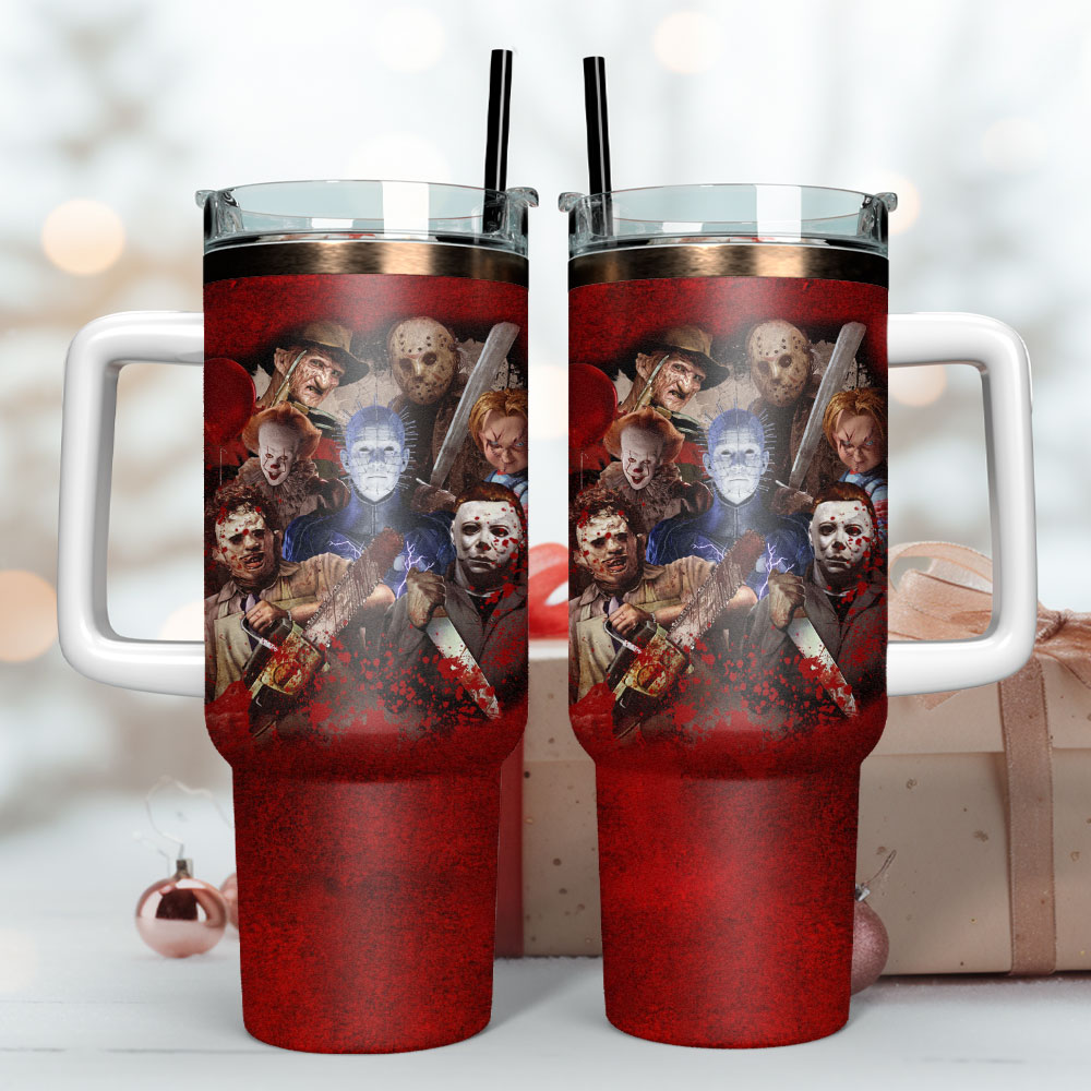 Horror Icons Tumbler With Handle Friends Parody Design 40Oz Insulated Cup