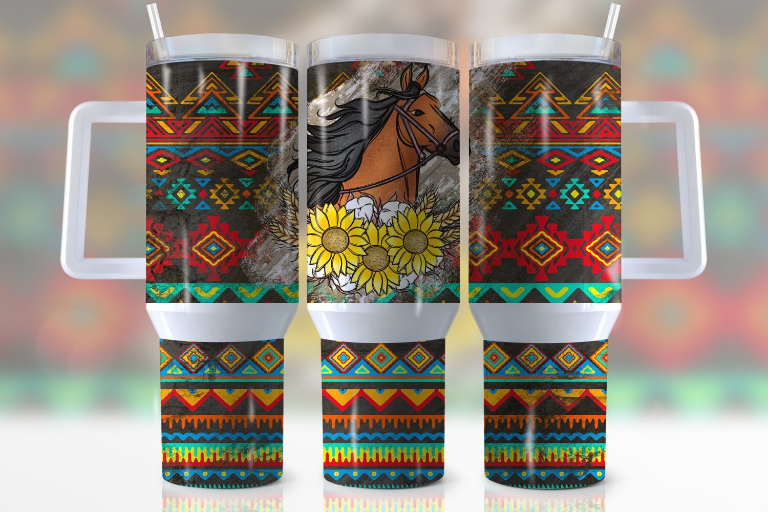 Horse Aztec Print Custom Stanley Quencher 40Oz Stainless Steel Tumbler With Handle