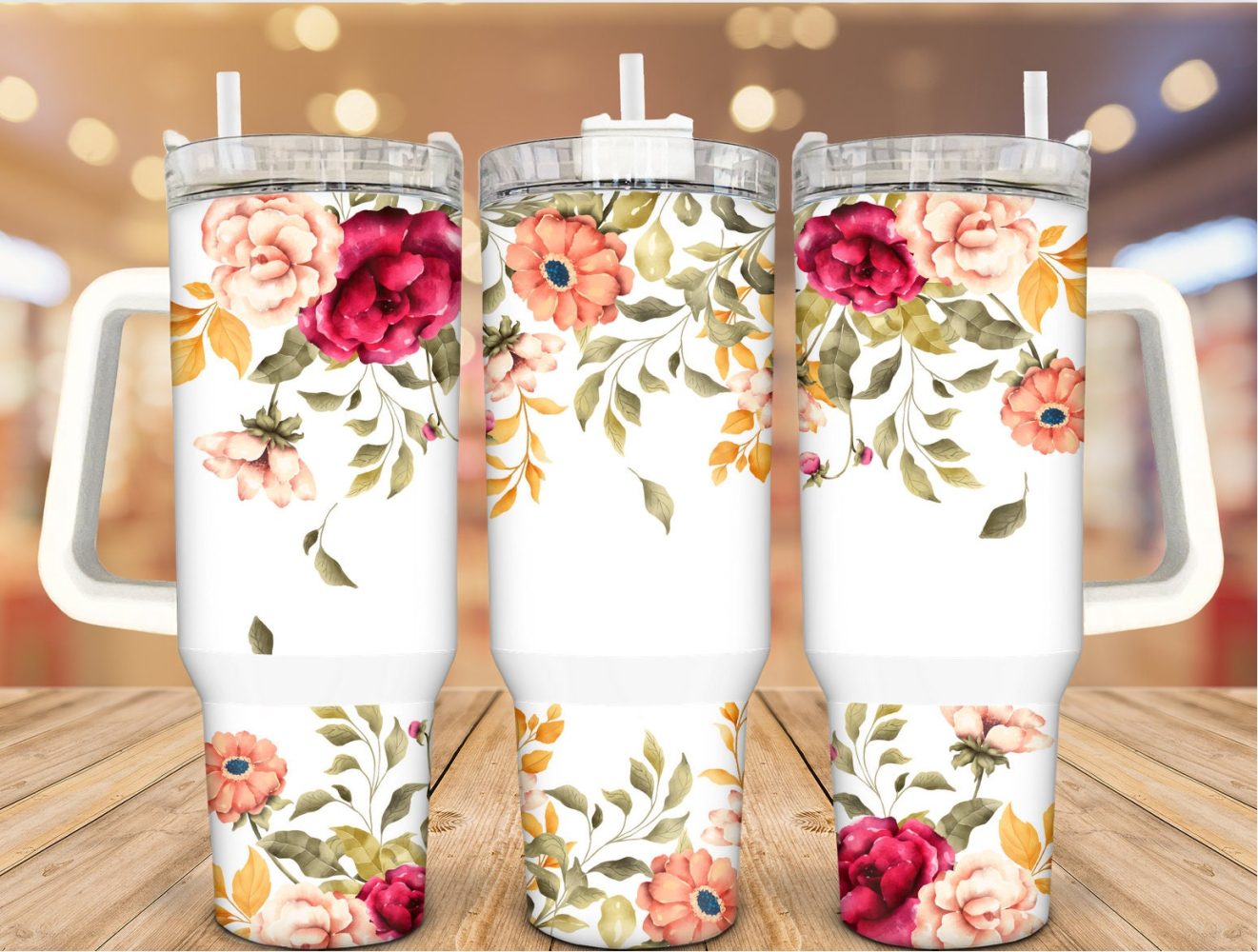 Autumn Flowers Custom Stanley Quencher 40Oz Stainless Steel Tumbler