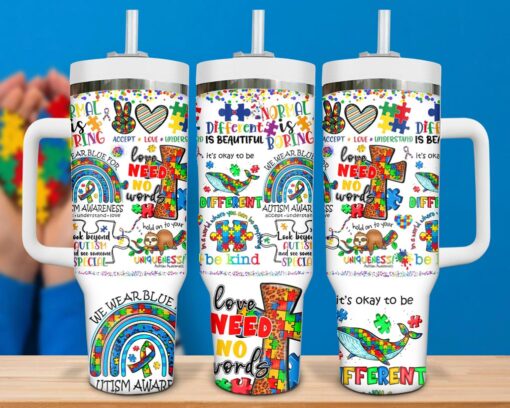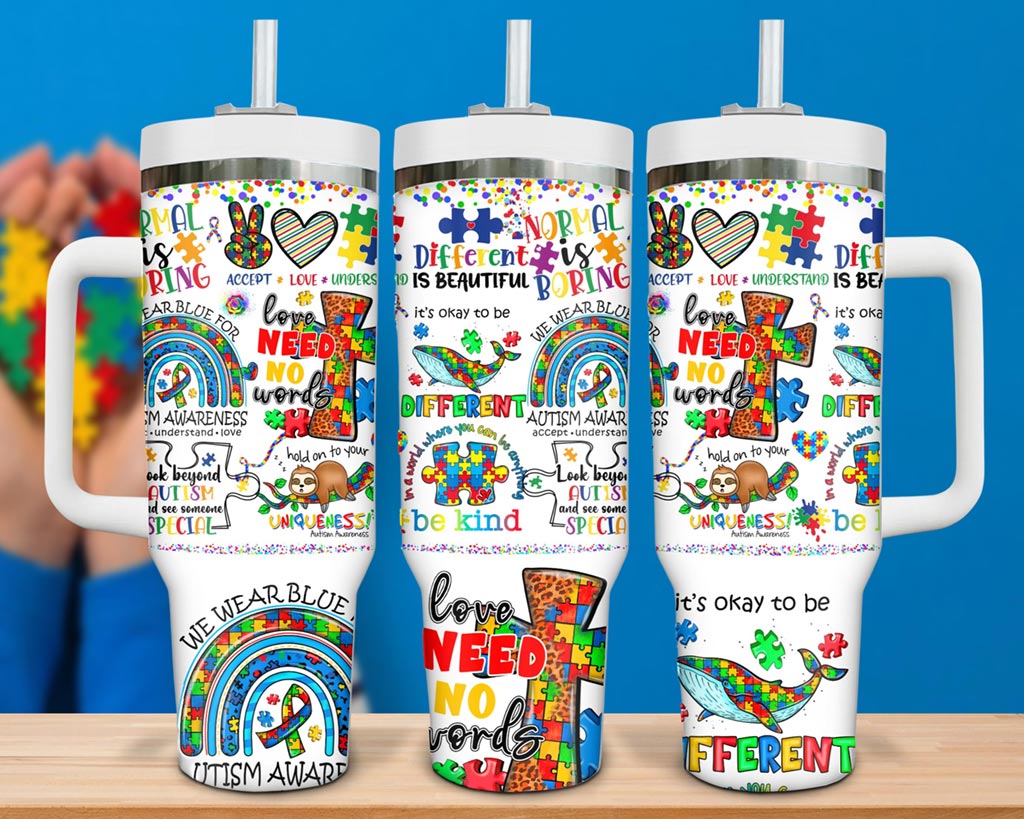 Autism Awareness Custom Stanley Quencher 40Oz Stainless Steel Tumbler With Handle