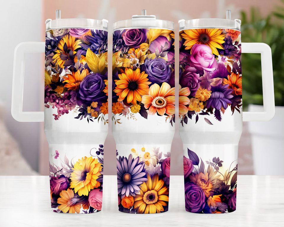 Autumn Flowers Custom Stanley Quencher 40Oz Stainless Steel Tumbler With Handle