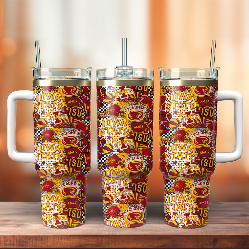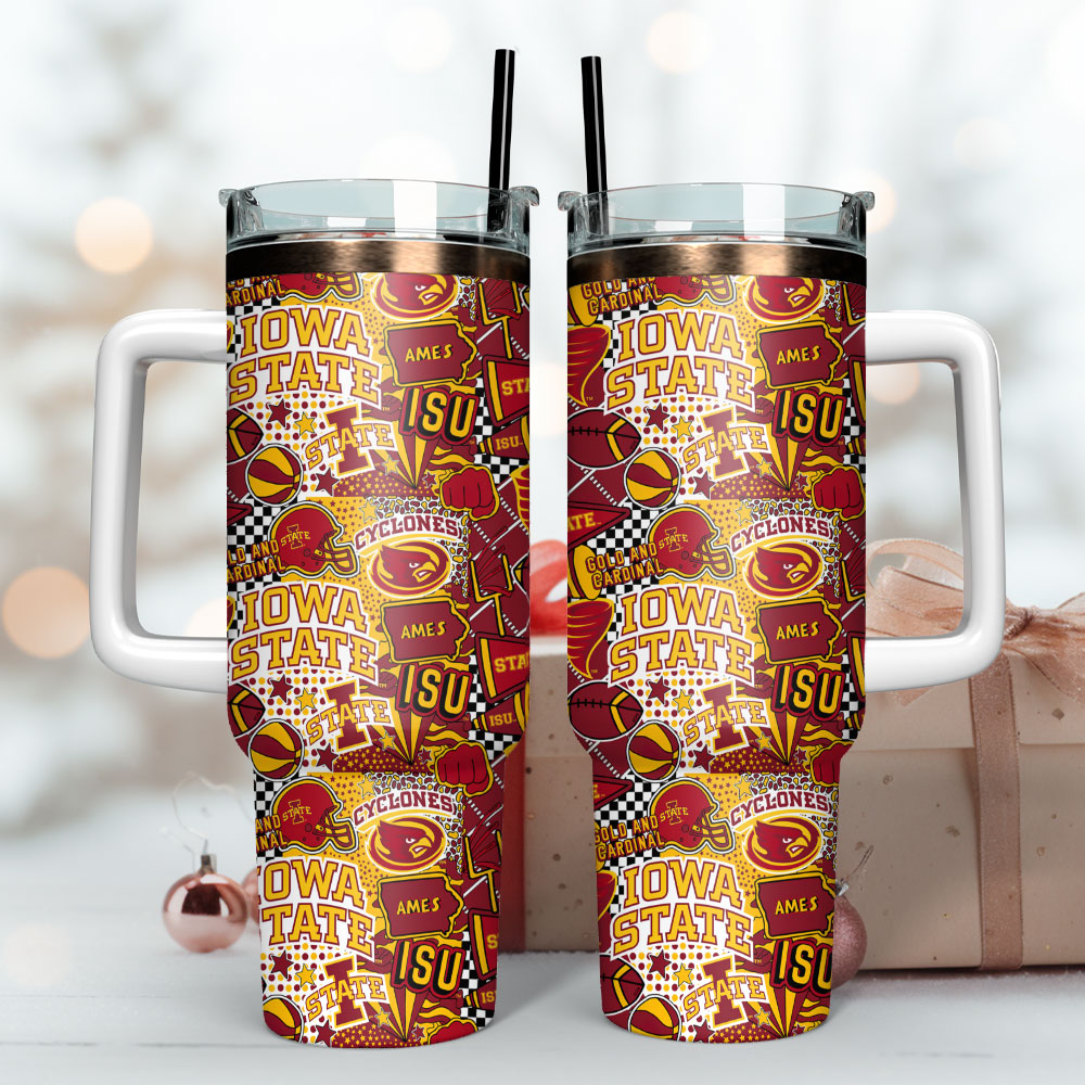 Iowa State Cyclones Football Ncaa Sport Custom Stanley Quencher 40Oz Stainless Steel Tumbler With Handle