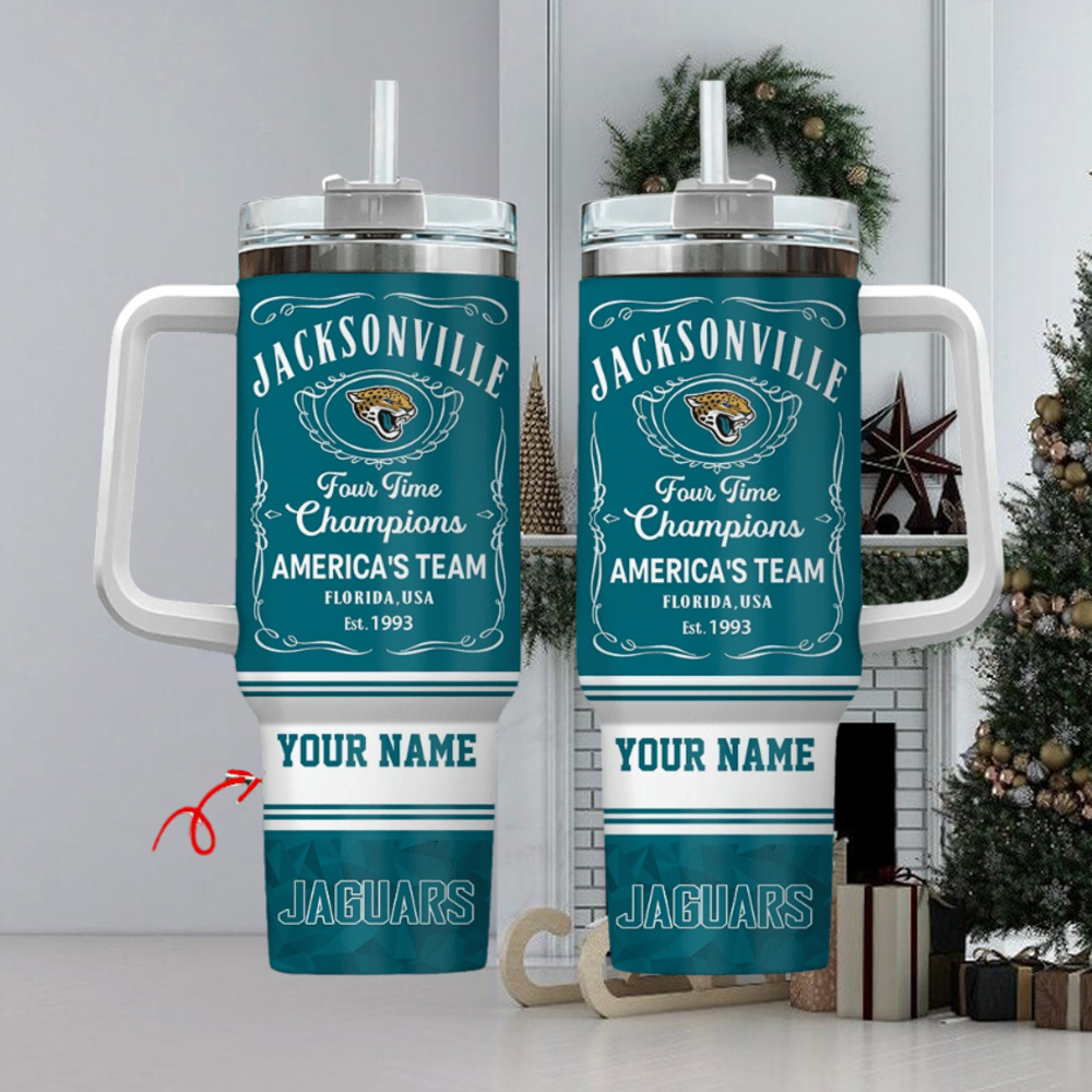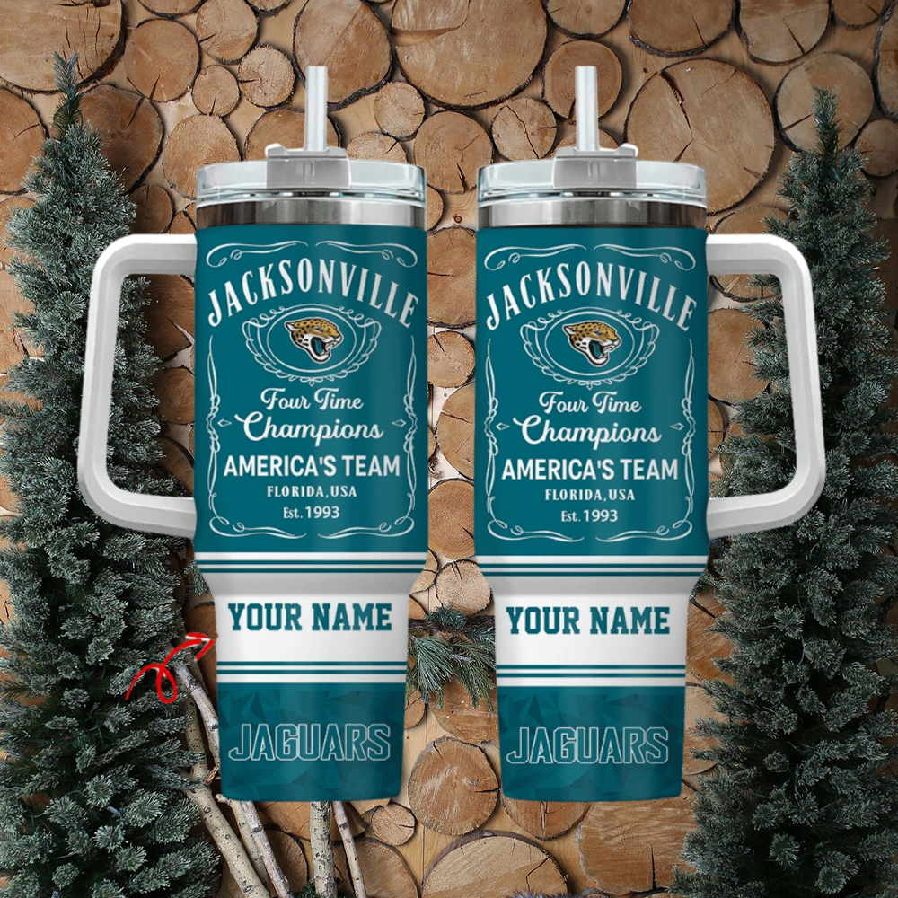 Jacksonville Jaguars Football Nfl Custom Stanley Quencher 40Oz Stainless Steel Tumbler With Handle
