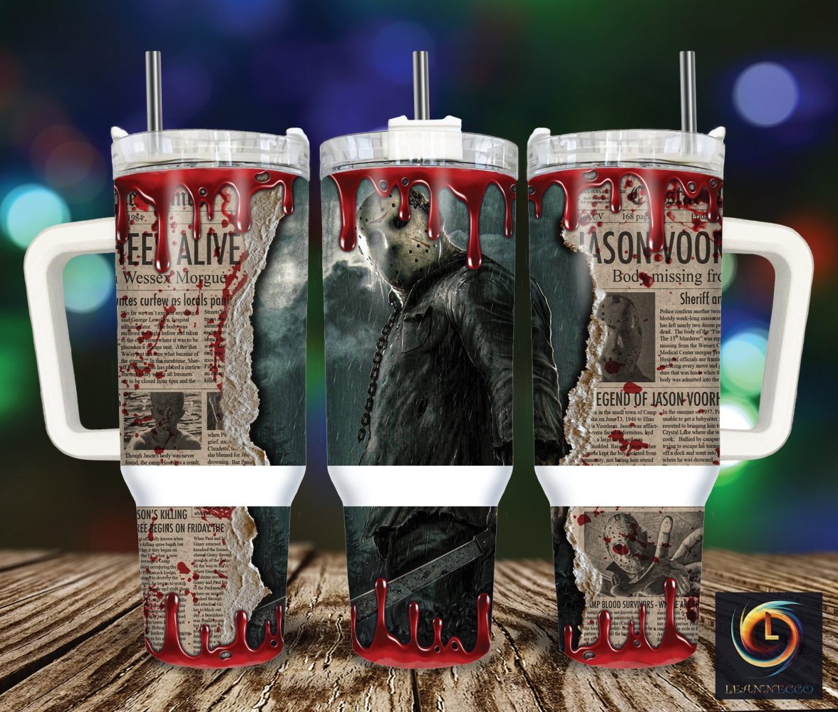 Jason Voorhees Friday The 13Th Movies Custom Stanley Quencher 40Oz Stainless Steel Tumbler With Handle